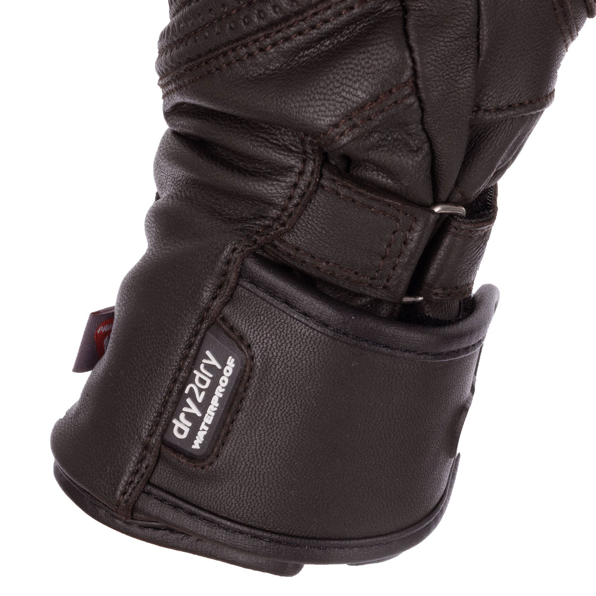 The Oxford Hamilton women’s leather motorcycle gloves combine timeless styling with CE approved protection for a reassuringly well constructed glove, designed to withstand the test of time. Built with a Dry2Dry™ waterproof & breathable membrane alongside a PrimaLoft® thermal insulation, which results in a happy rider during wet cold weather conditions. A full leather construction delivers ride after ride and delivers a superb fit. Available in a range of colours to match any riders gear, bike and personal taste!