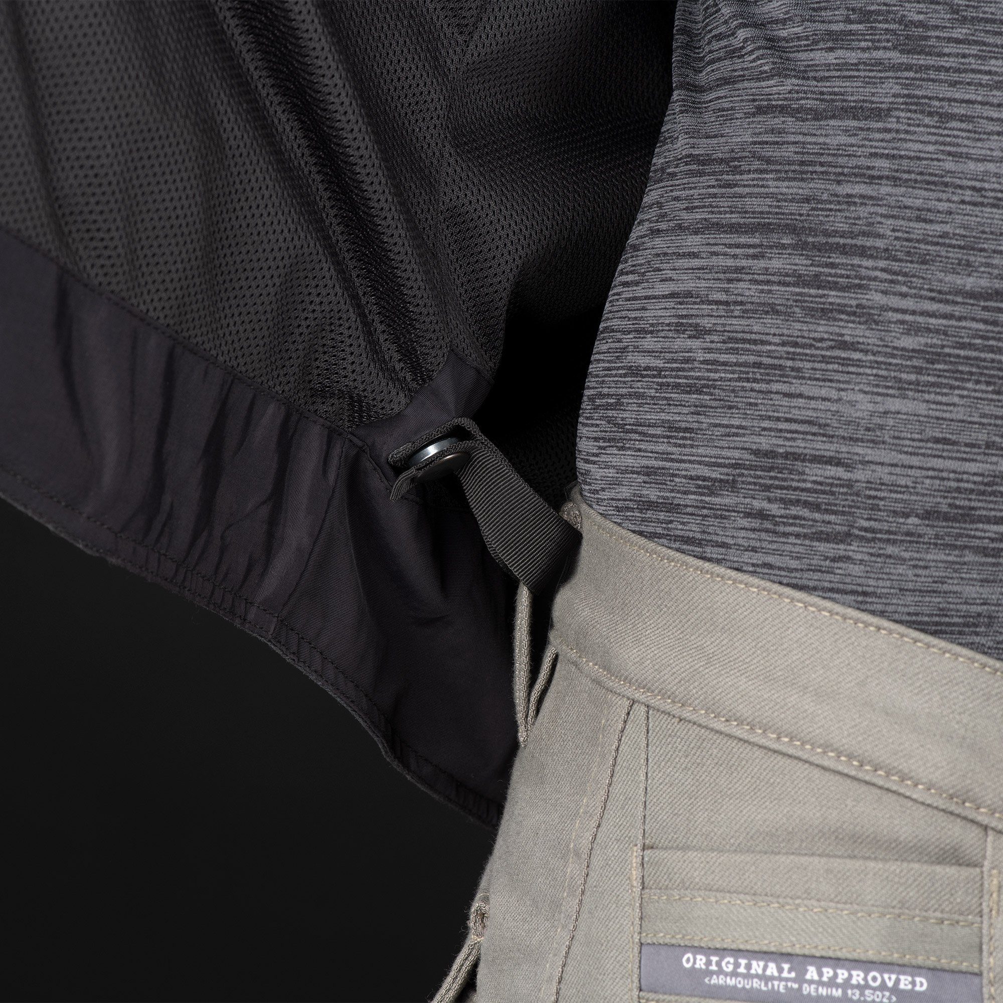 Belt attachment loops for a secure protective fastening with jeans.