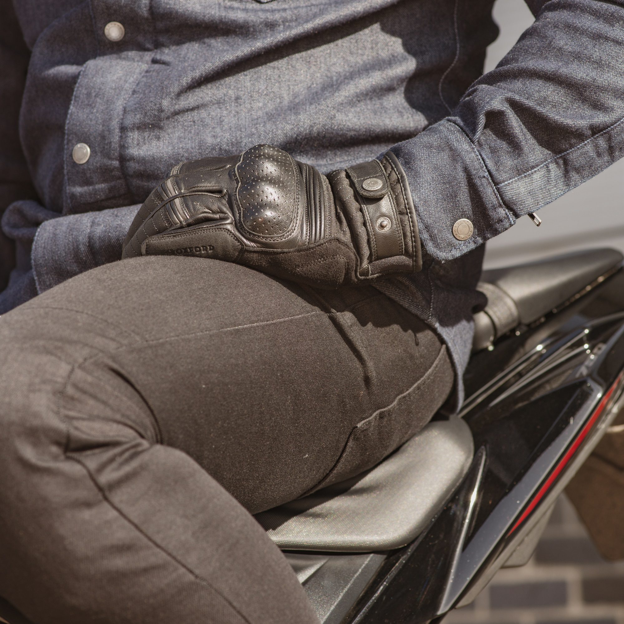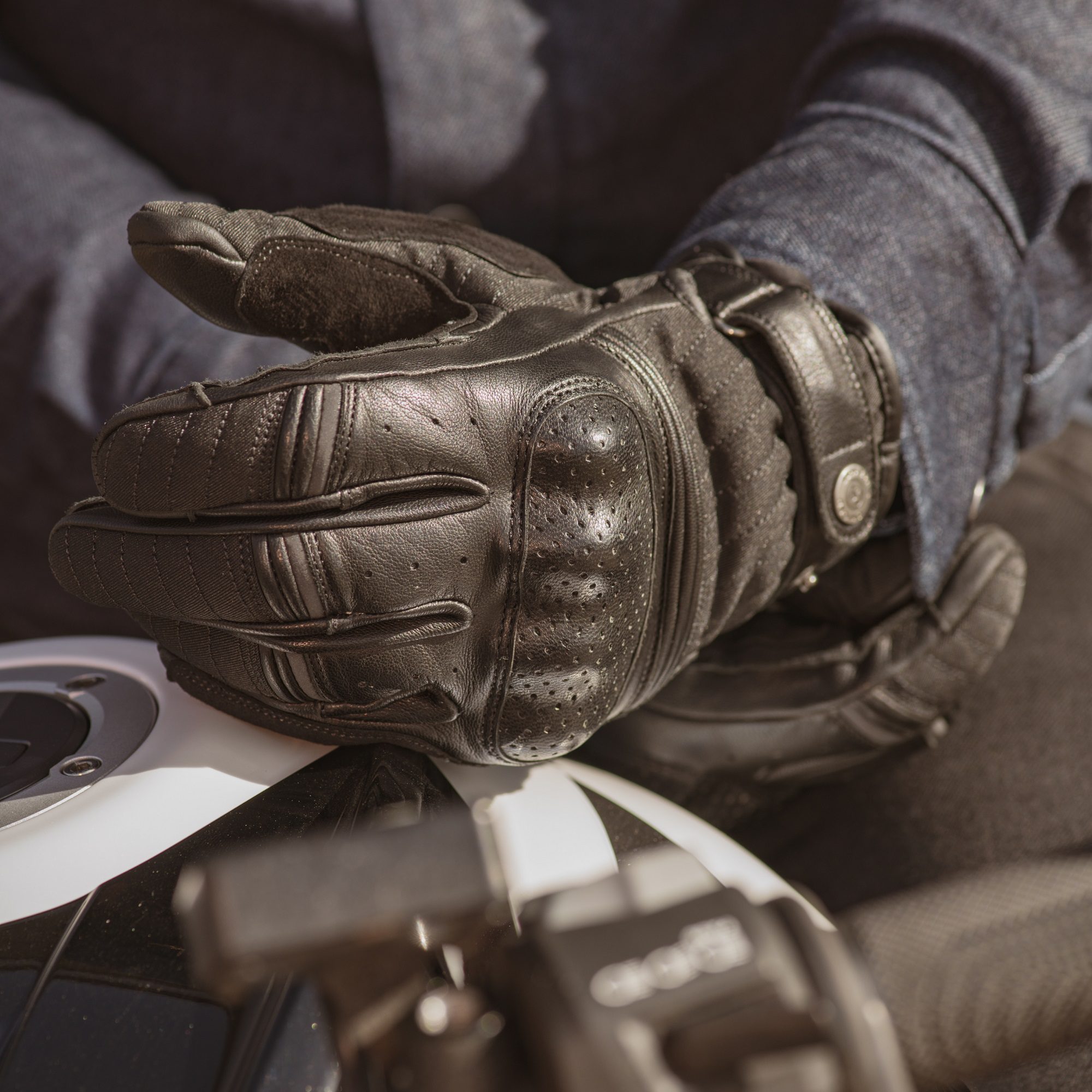 The Oxford Hardy short motorcycle gloves combines classic styling with modern materials for a reassuringly well-constructed riding glove that withstands the test of time. Using a combination of both leather and textile materials, the gloves deliver a great fit without compromising on performance. Safety is assured with reinforcements throughout alongside a heat stamped Level 1 CE certified knuckle protector. Premium finishes including suede overlays and a snap wrist fastening add the finishing touches to clean & classic styling lines.