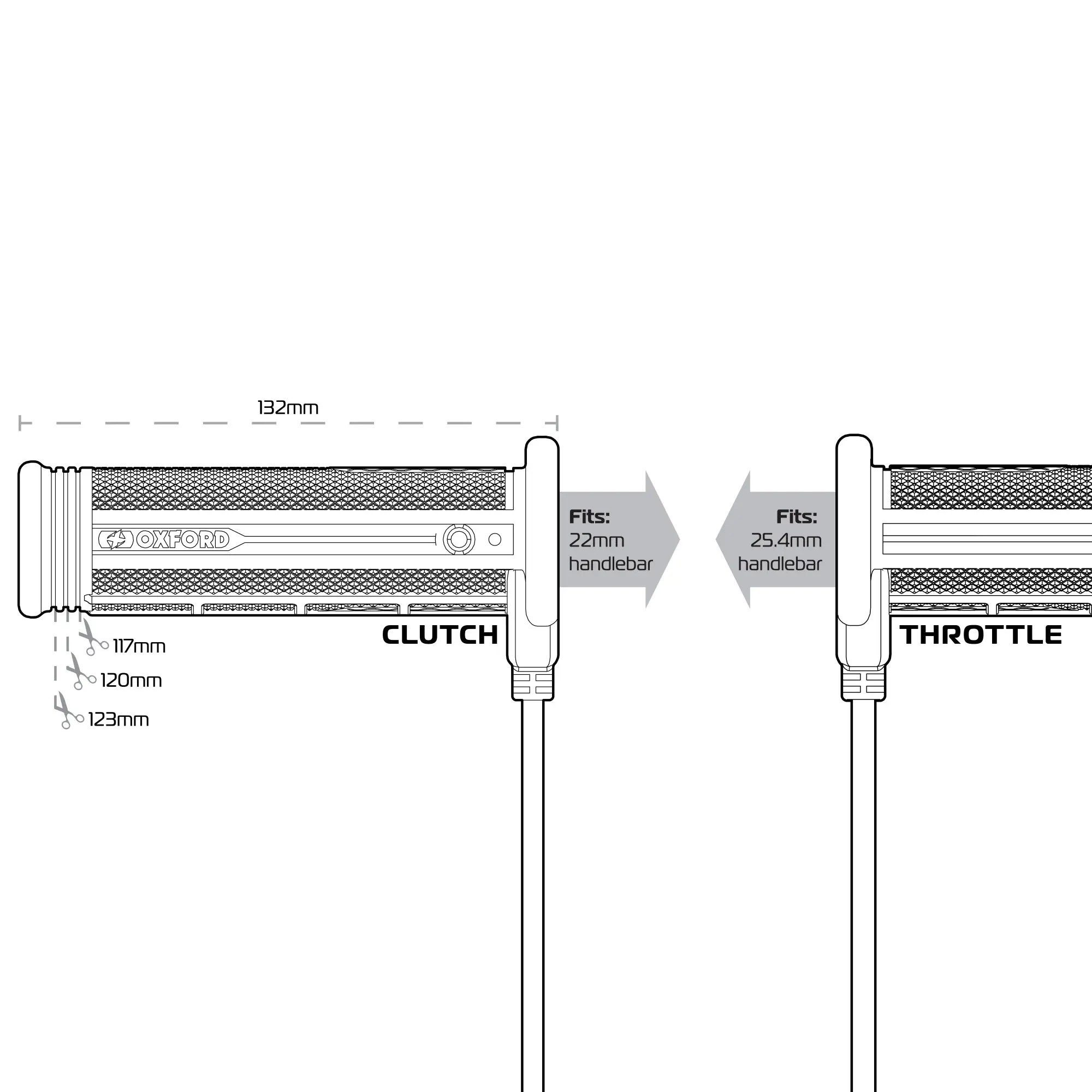 Customisable grips – Grip length of 132mm but can be trimmed to 123, 120 or 117mm if required, with open ends allowing bar end weights can be fitted.