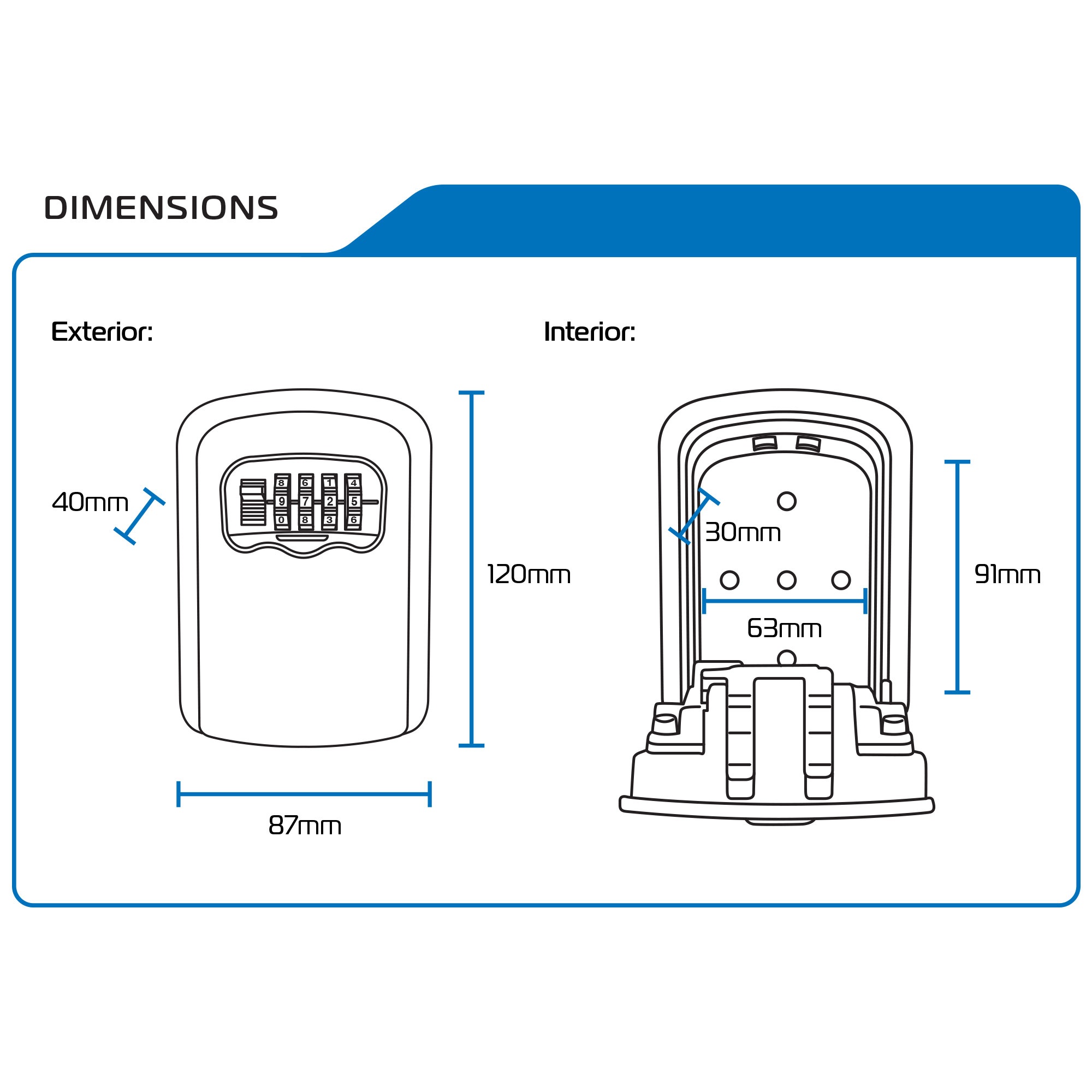 Interior housing dimensions: 63 x 91 x 30mm.