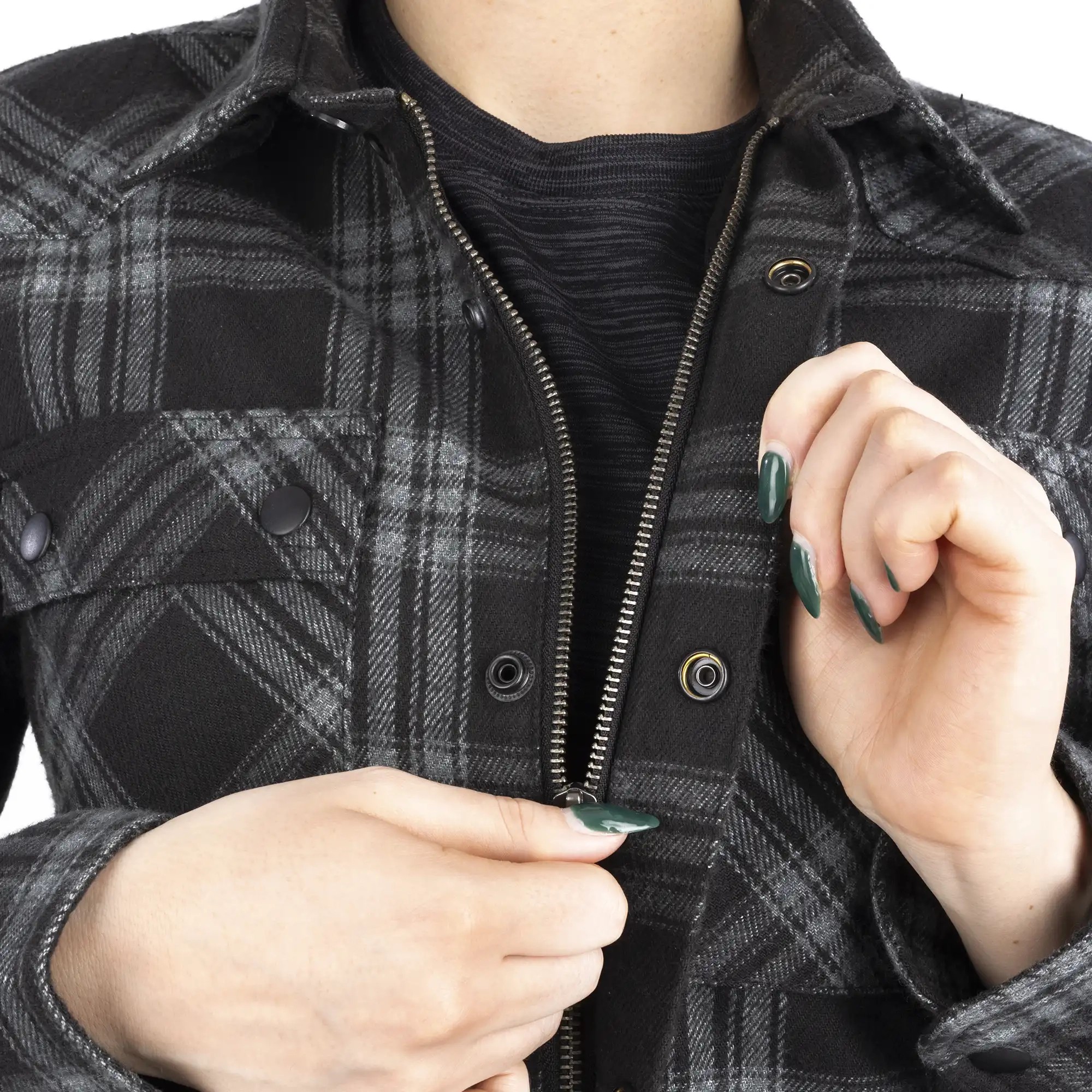 Zipper & press stud cuff closure.