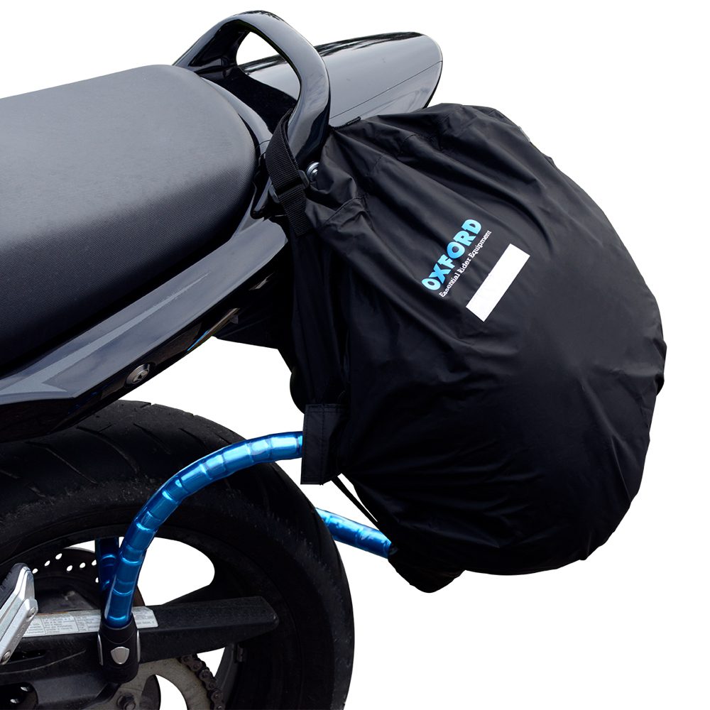 If you’re fed up of carrying your helmet around when you nip into the shops or park up for a coffee, then look no further than the Oxford Lid Locker helmet bag. The motorcycle helmet bag enables you too leave your bag safely with your bike and free up your hands while you go about your business. The lock (not provided) is threaded down a waterproof tube which runs through the visor aperture and out of the bottom of the helmet so that you can lock it to the bike. The easiest lock to use is an armoured cable lock (such as an Oxford Revolver), but you could equally use a chain lock or a regular cable lock.