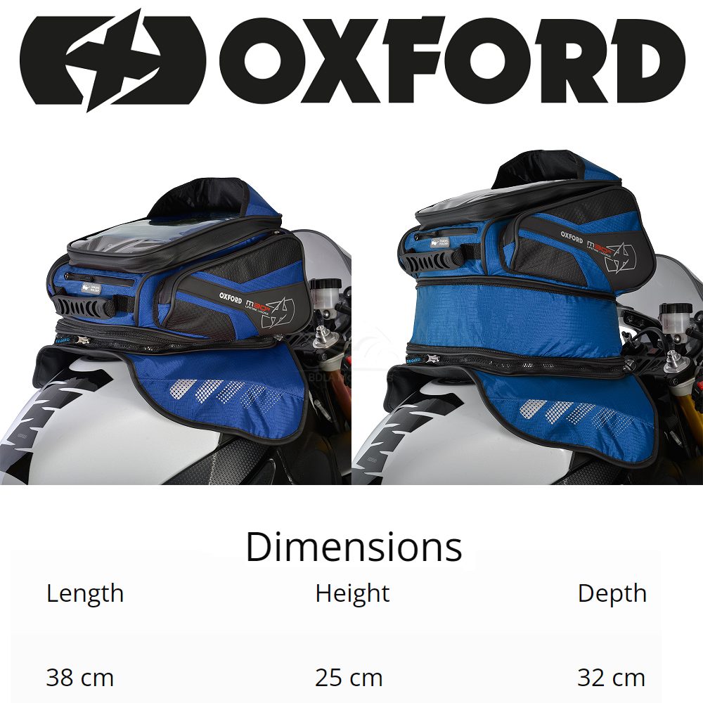 Sculpted and fit for purpose, the Oxford M30R blue motorcycle tank bag is a must have for modern sports bikes and riders. Large enough to carry a full face helmet when expanded, it is equally capable of swallowing up enough gear for a weekend away.