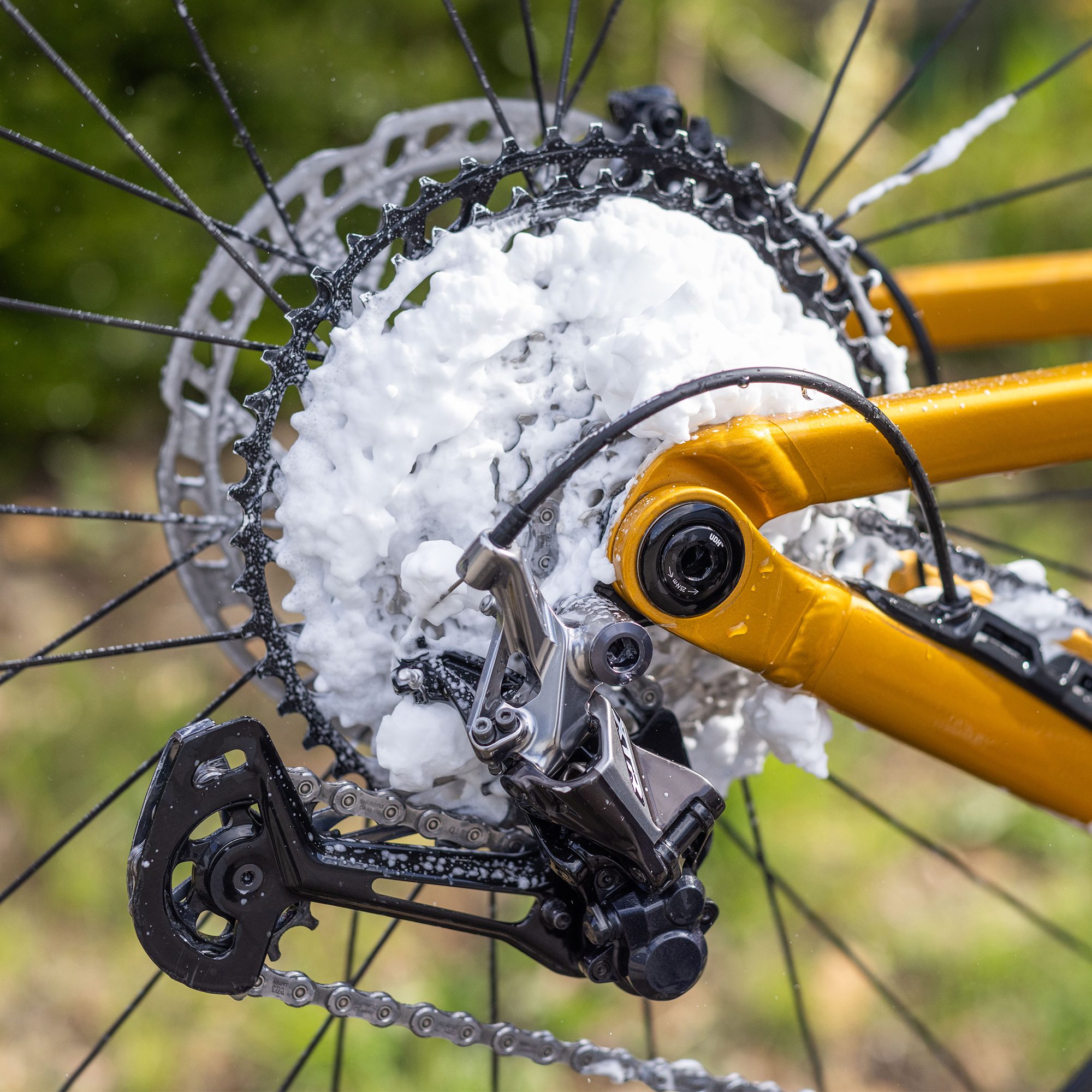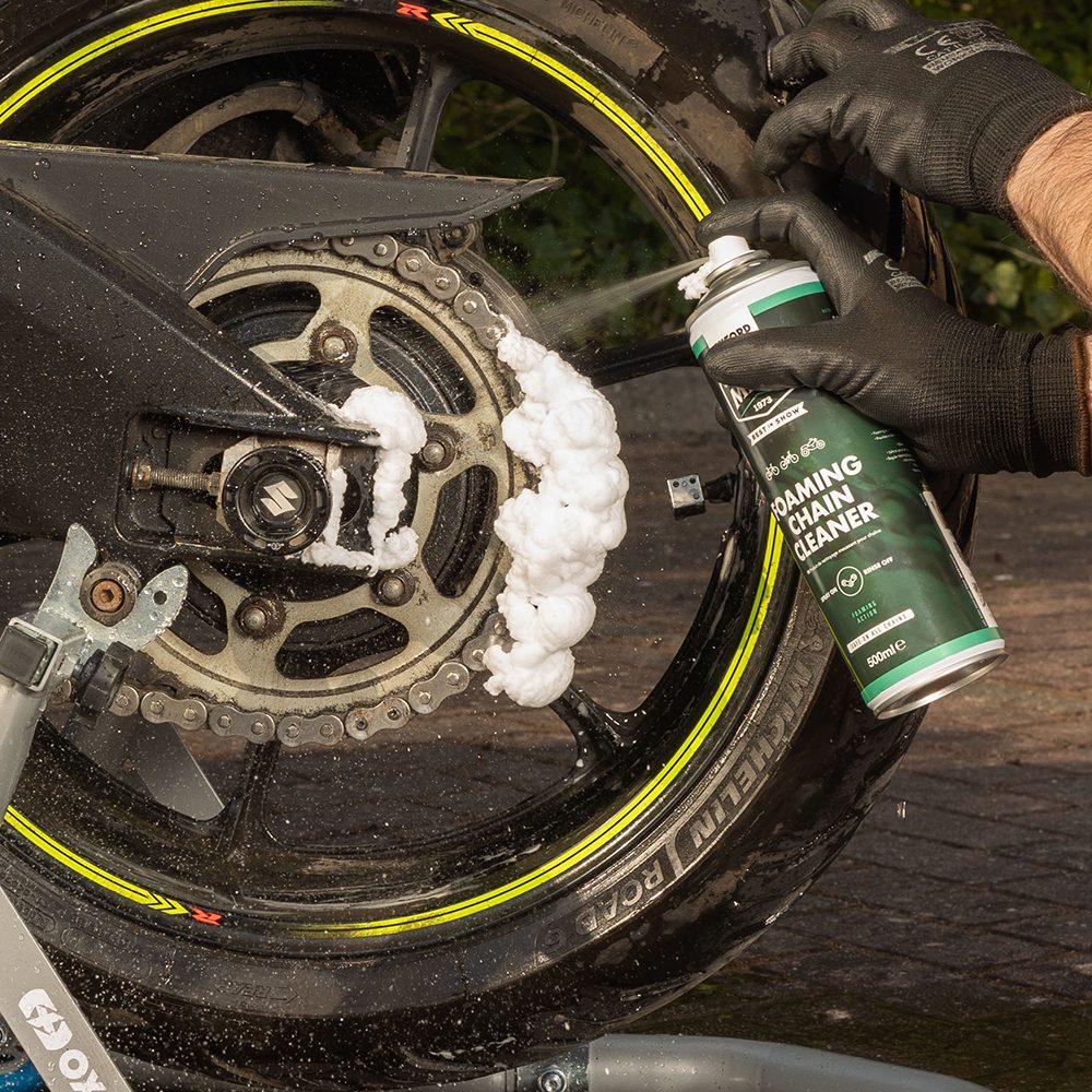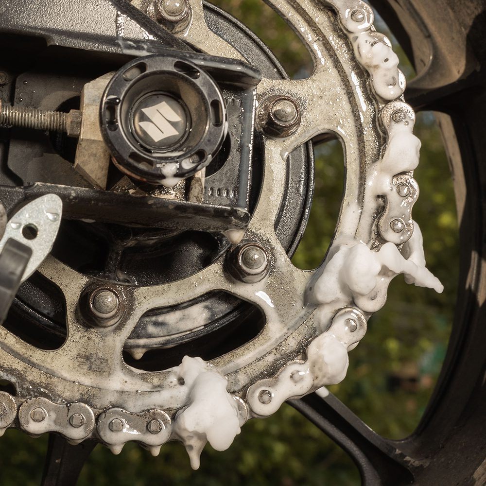 Foaming action lifts dirt off the chain for easier cleaning.