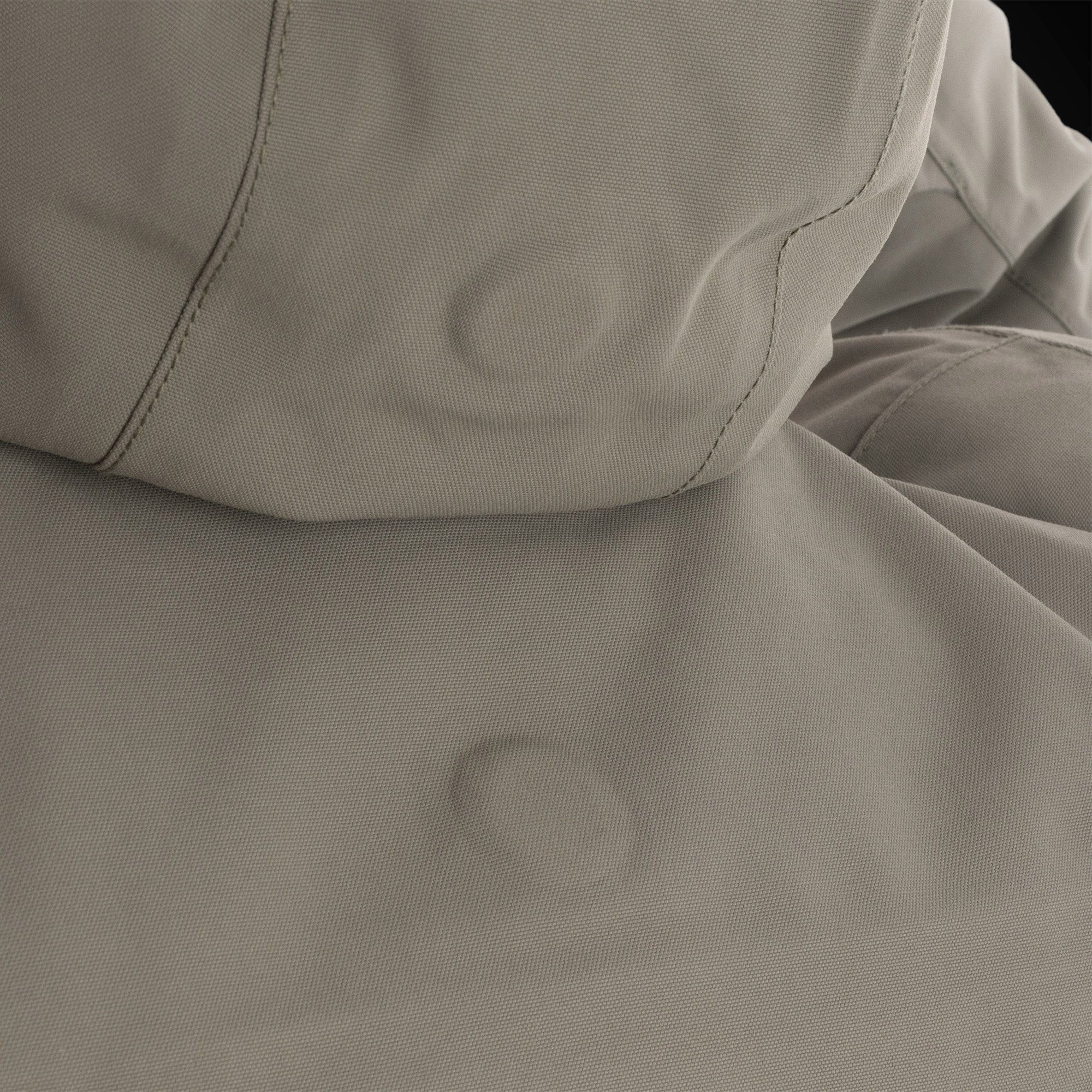 Removable hood with anti-flap magnetic fastening, adjustable opening and press stud attachment to outer shell.
