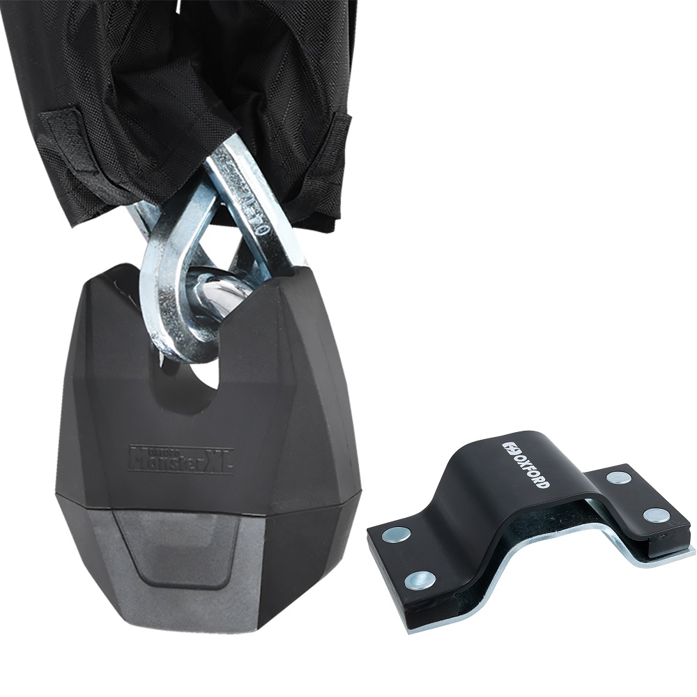 The Oxford Monster XL Chain & Anchor force ground anchor is a great security solution for your motorcycle. The Monster XL has survived the Oxford 5 minute attack test, in which the chain & lock proved to be saw, drill, sledge hammer & bolt cropper resistant.