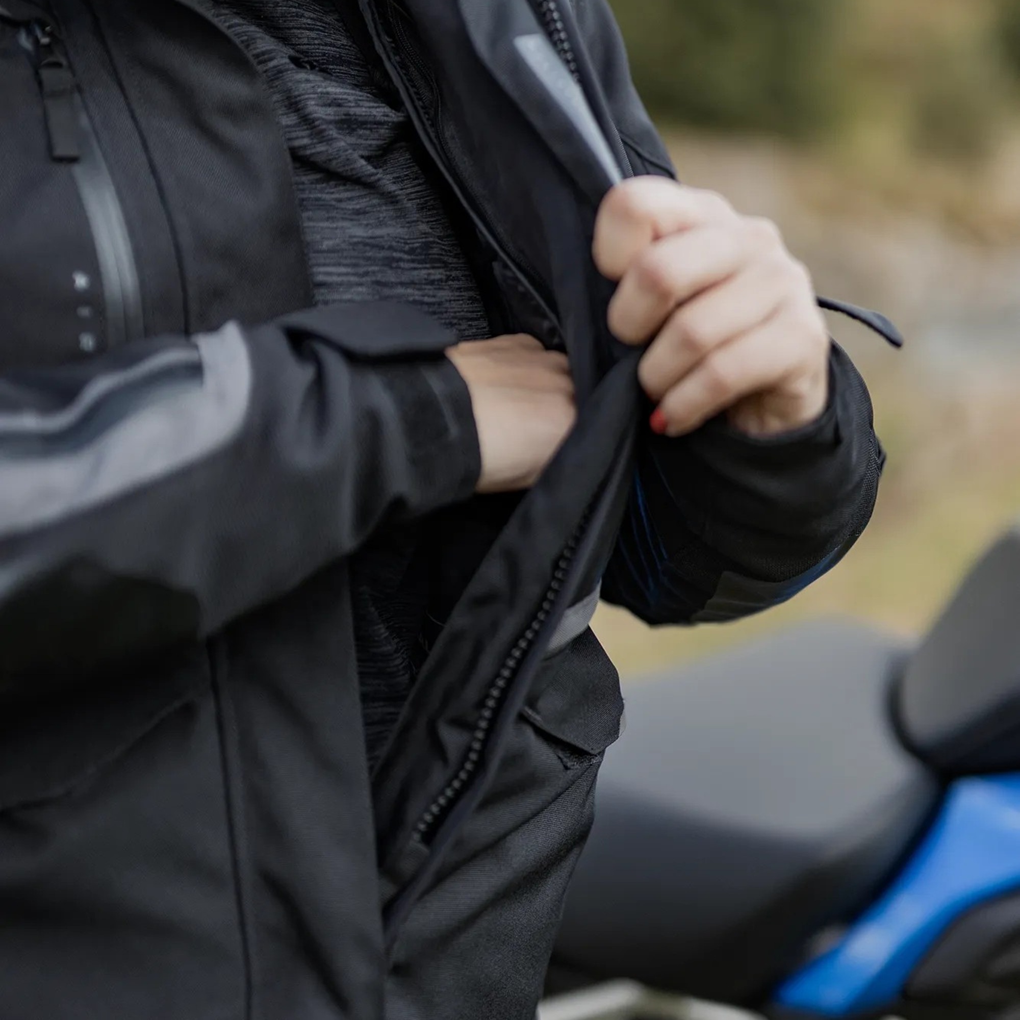 The critical impact zones of the shoulders and elbows have been reinforced with heavier duty materials and trim, all of which helps the Montreal to comfortably achieve a CE AA rating, as well as a reassuring feel of quality. Special attention has been given to the women’s fit, with accordion stretch at the waist adapting to the wearer’s form – giving a secure silhouette. Waist adjustment unobtrusively cinches the garment in at the waist and a dropped hemline at the rear helps keep the lower back covered.