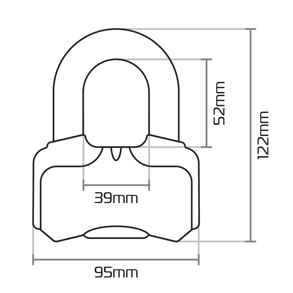 16 mm hardened steel shackle prevents bolt cropping.