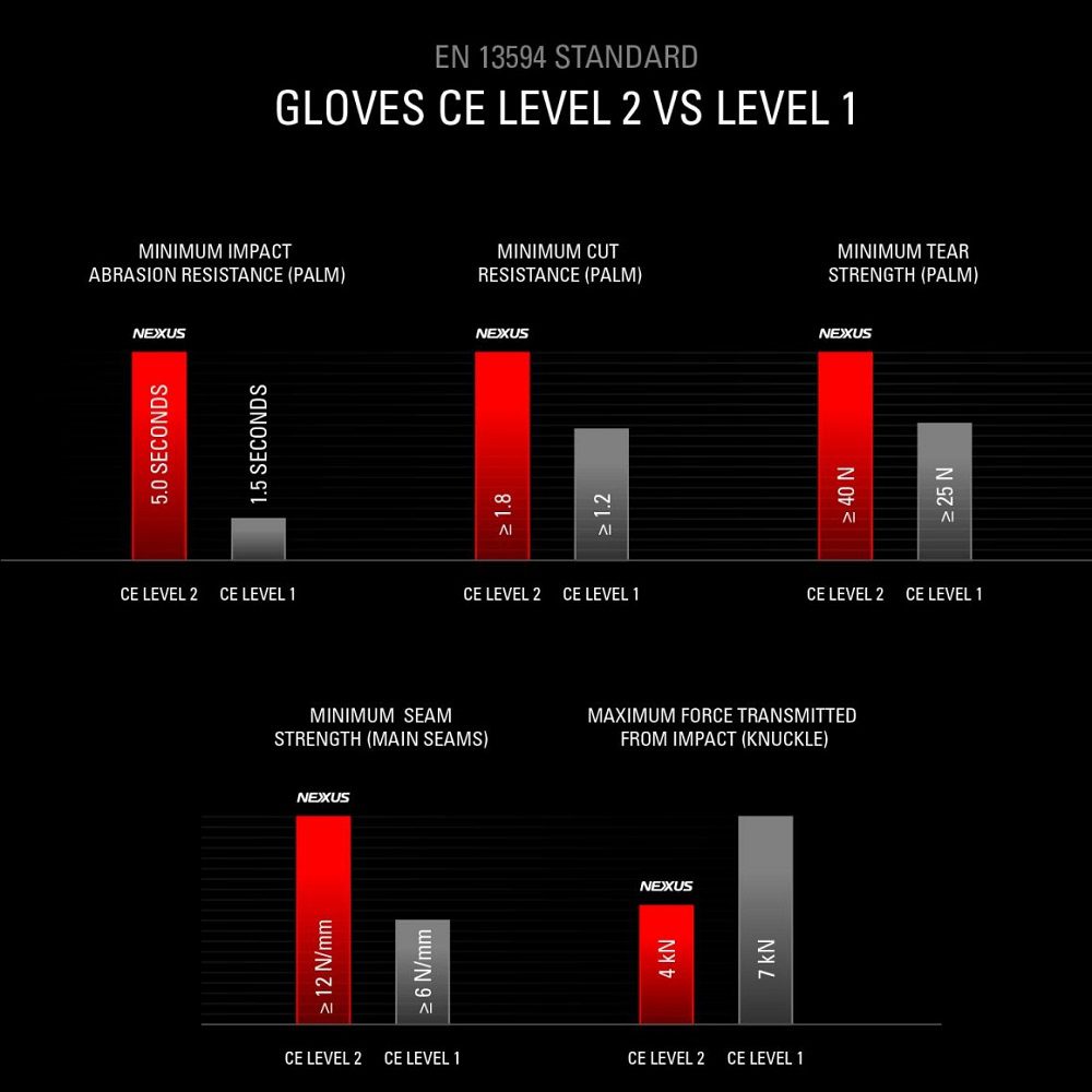 The Oxford Nexus motorcycle gloves are a top-of the range sports glove designed for road riders who want the highest level of protection in a user-friendly package. A full leather construction delivers excellent quality and feel every time you take to the road.