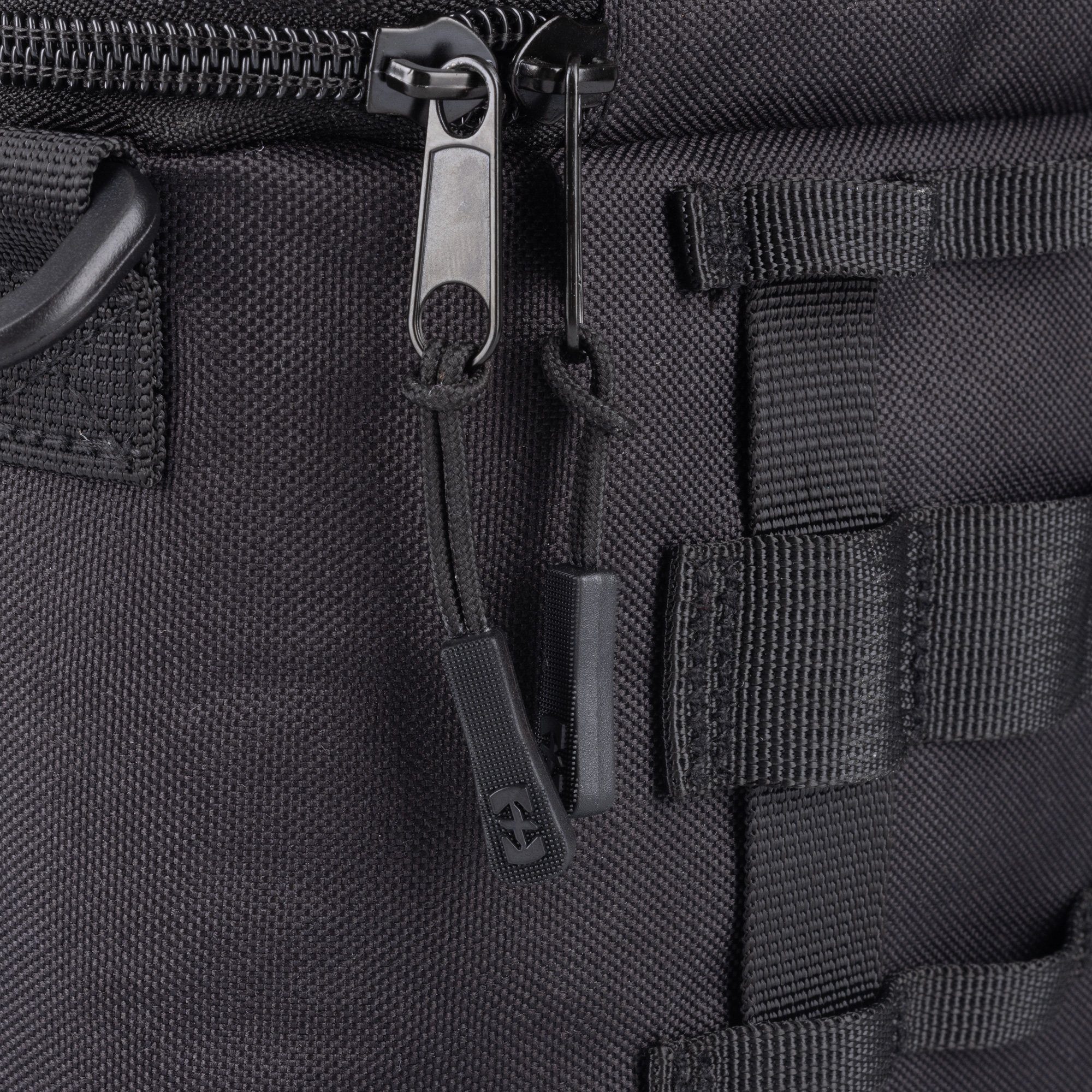 The MOLLE-compatible (Modular Lightweight Load-carrying Equipment) system and PALS (Pouch Ladder Attachment System) webbing combine to make a user-friendly webbing grid for accessory straps to be woven through, creating a tight, secure fit.