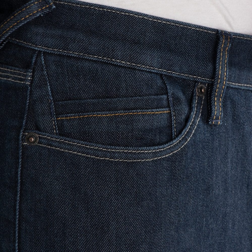 After continuous testing by Oxford both in the lab and out on the road, they have developed Armourlite. This material is a highly durable denim which maintains a vintage look and softness, and result in motorbike jeans you actually want to wear. Skilled weavers introduced a polyamide fibre in the weave of the fabric, a hard-wearing material originally developed by the military for parachute cords. A two-way stretch was also added to enhance mobility and increase comfort, no matter your riding position.