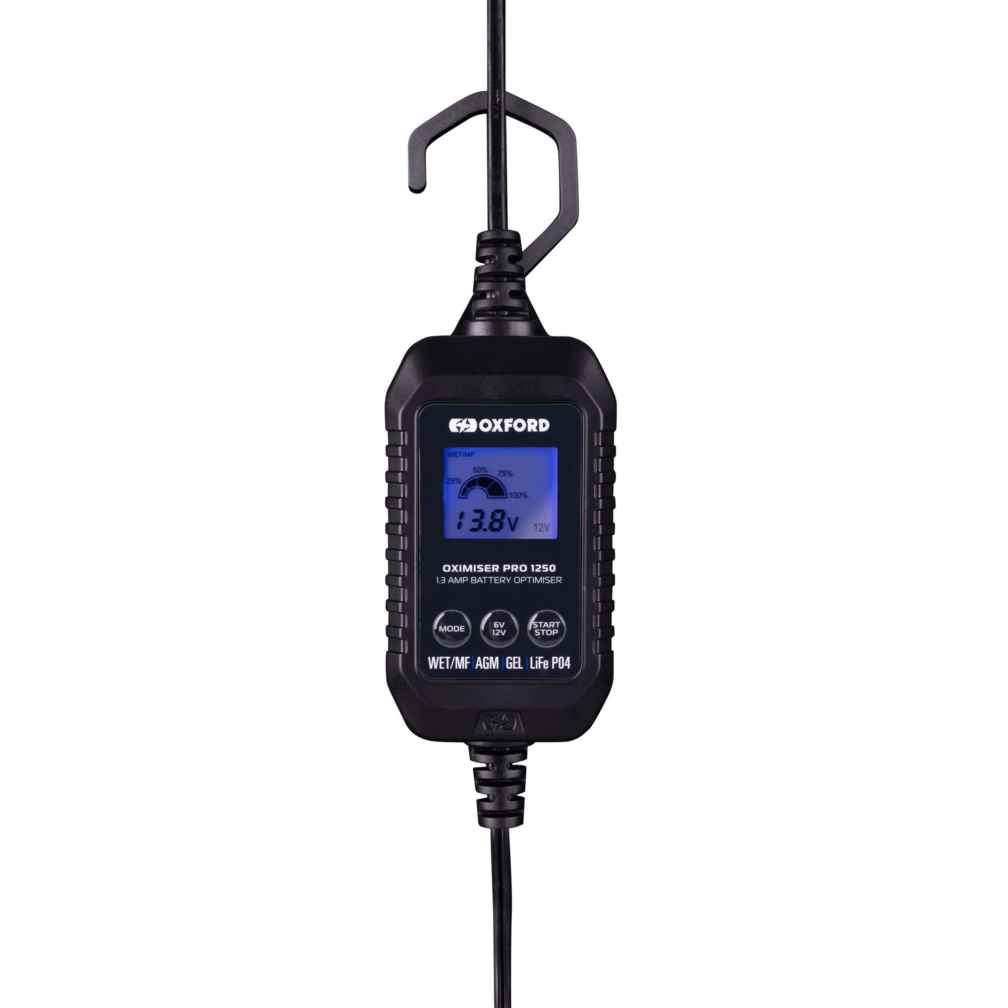 The Oxford Oximiser Pro 1250 motorcycle battery charger a market-leading battery optimiser, perfect for any rider looking to keep their pride and joy in top condition. Part of a range of professional battery optimisers designed to automatically charge, maintain and optimise your battery.