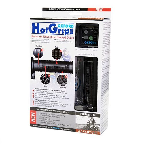 Tackle the cold weather directly with the Oxford Premium adventure motorcycle hot grips. No longer arrive at your destination tired, cold and uncomfortable! With a heating function which keeps your grips, handlebars and in turn your own hands warm in the harsh cold weather. Easy to install, and even easier to adjust. The motorbike grips have ergonomically engineered surface structures to optimise riding performance.