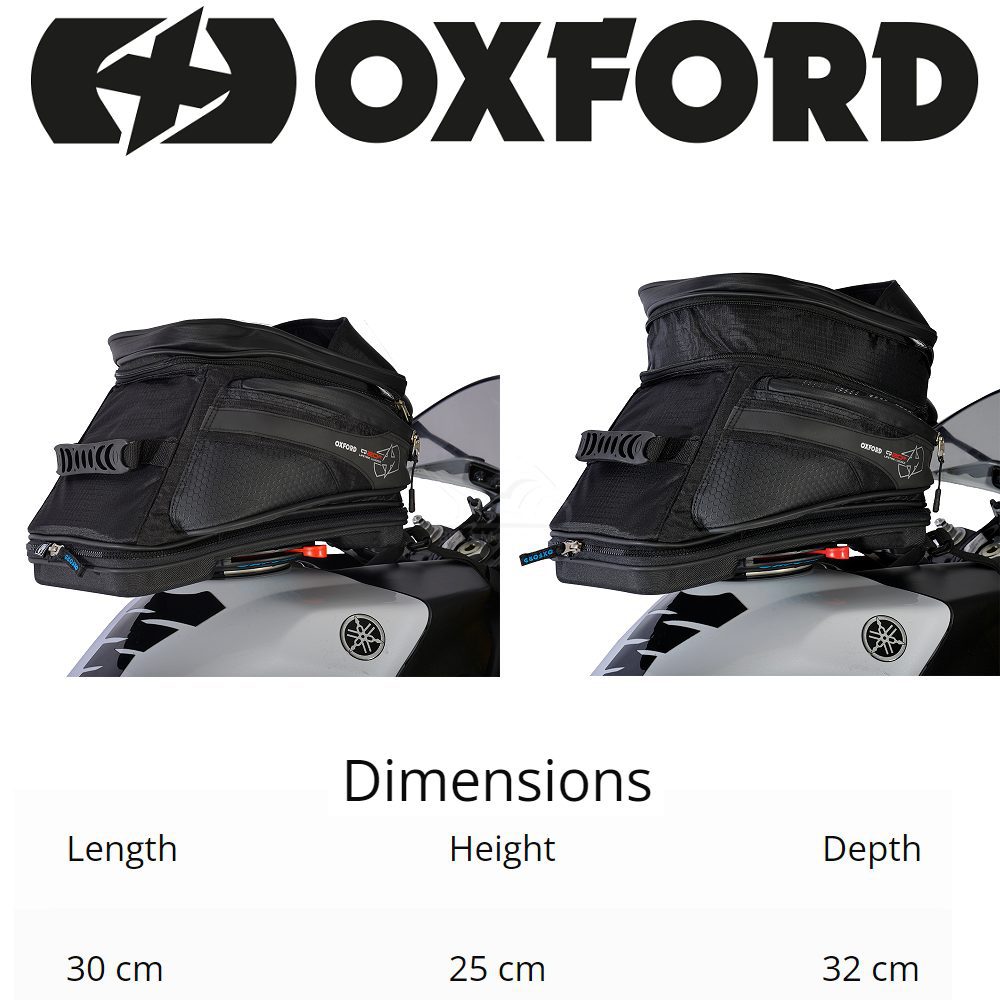 The Oxford Q20R is a motorcycle tank bag packed with all of Oxfords usual excellent features. Specially sculpted to fit the cut-away shape found on most adventure bikes tanks.