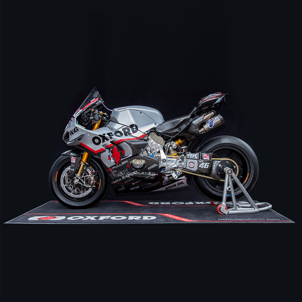 The Oxford Racing motorcycle workshop mat is perfect for riders looking for a safe and stylish way to work on their bike. The motorcycle garage mat is designed to absorb minor oil spillages in and to keep a tidy and safe workshop.