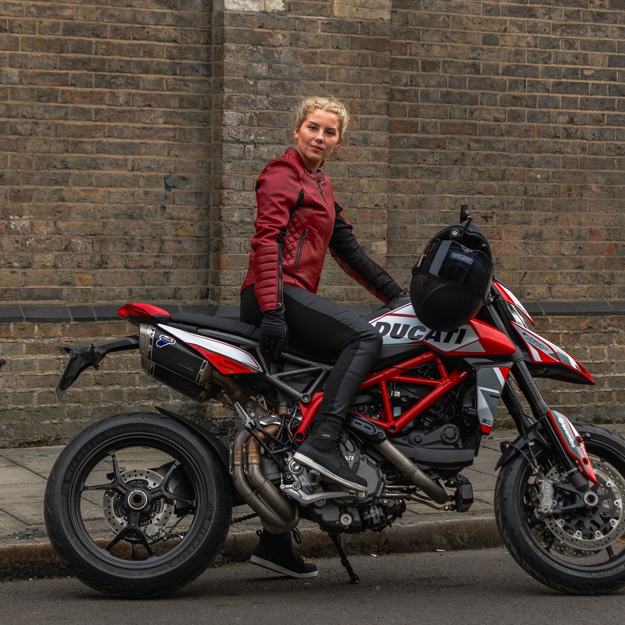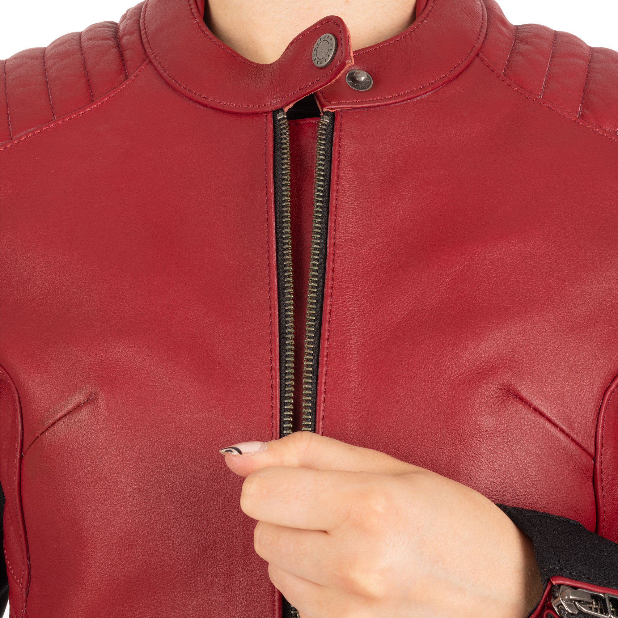 Oxford Radley Women’s Leather Motorcycle Jacket – Red