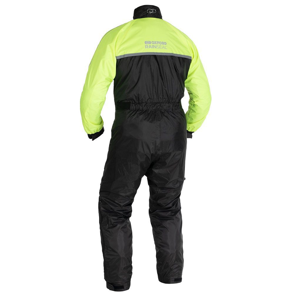 The Oxford Rainseal motorcycle over suit is a perfect solution for riders who want to keep warm and dry in harsh weather. Simple yet carefully designed & beautifully made light weight weather protection. The fully waterproof over suit with half lining, fit adjusters and 360ยฐ reflective detailing. Lightweight by nature, you’ll be able to keep your clothing and consequently yourself dry underneath the protection that is given. The Rainseal range has intelligent sizing, allowing you to order your regular size. Only size up if you plan to wear over leathers with a race hump.