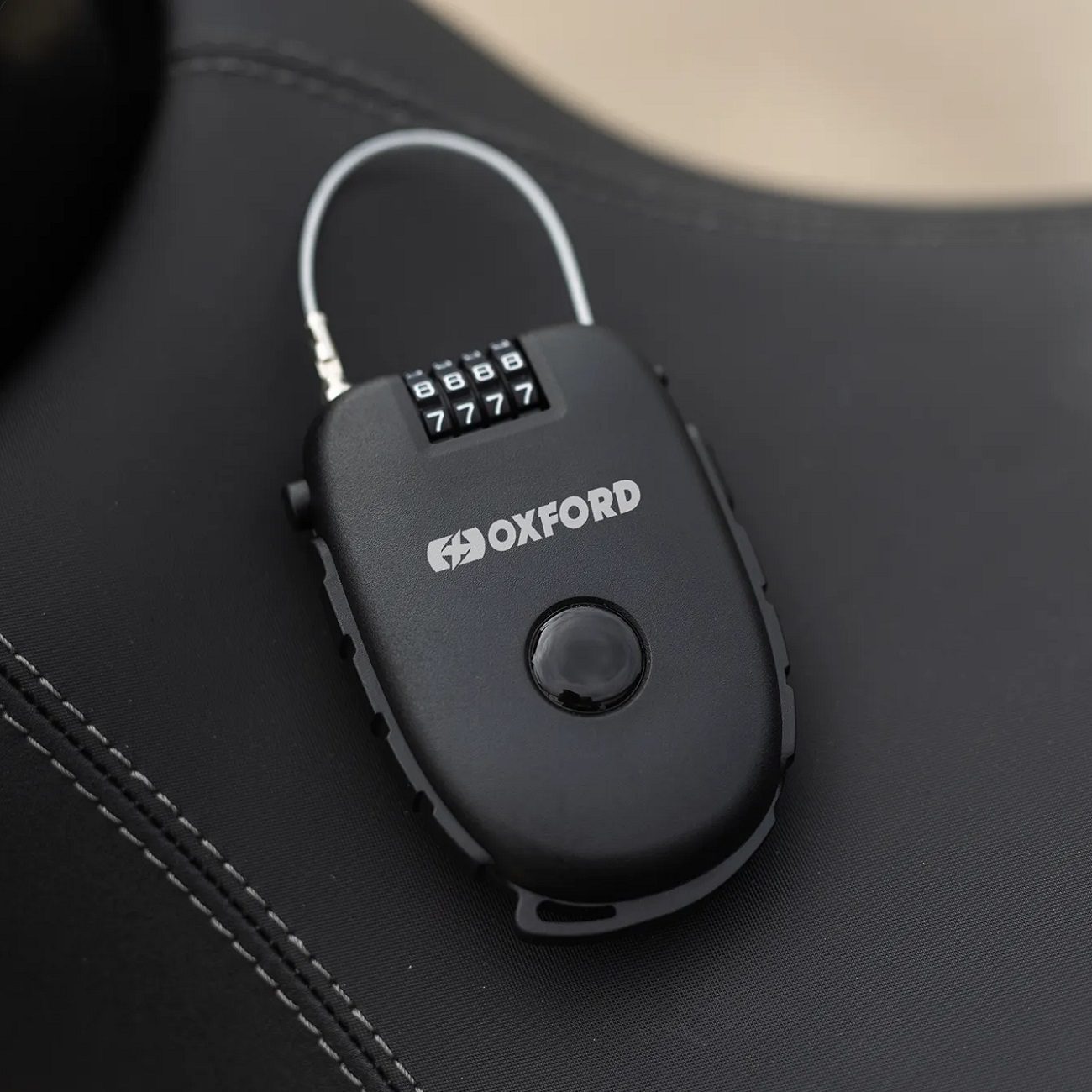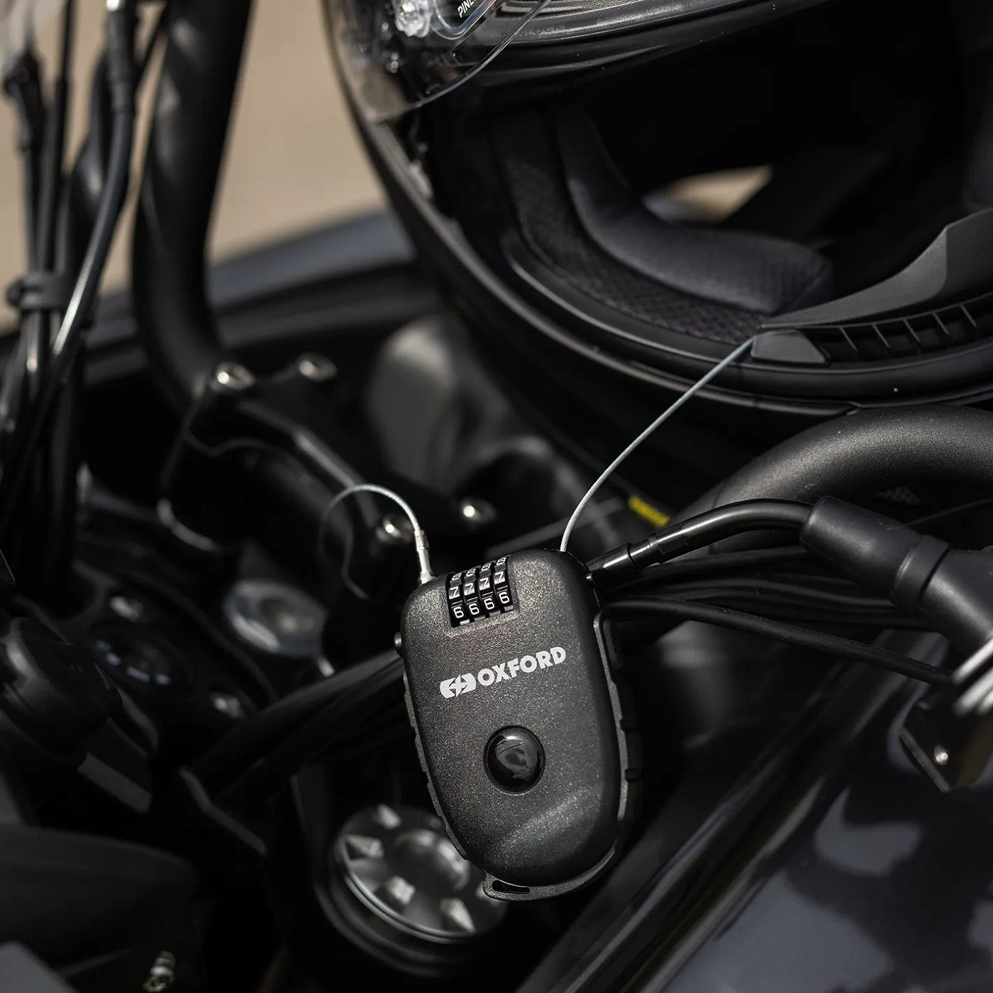The Oxford motorcycle helmet cable lock is perfect for riders on the go, who want to secure their helmet and accessories to their bike. A retractable combination cable lock is perfect for quickly securing accessories in a pinch.