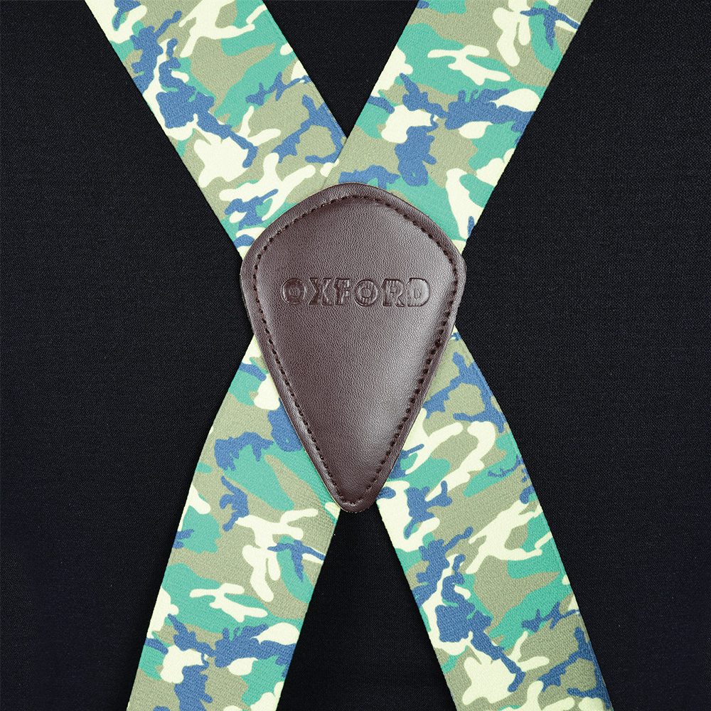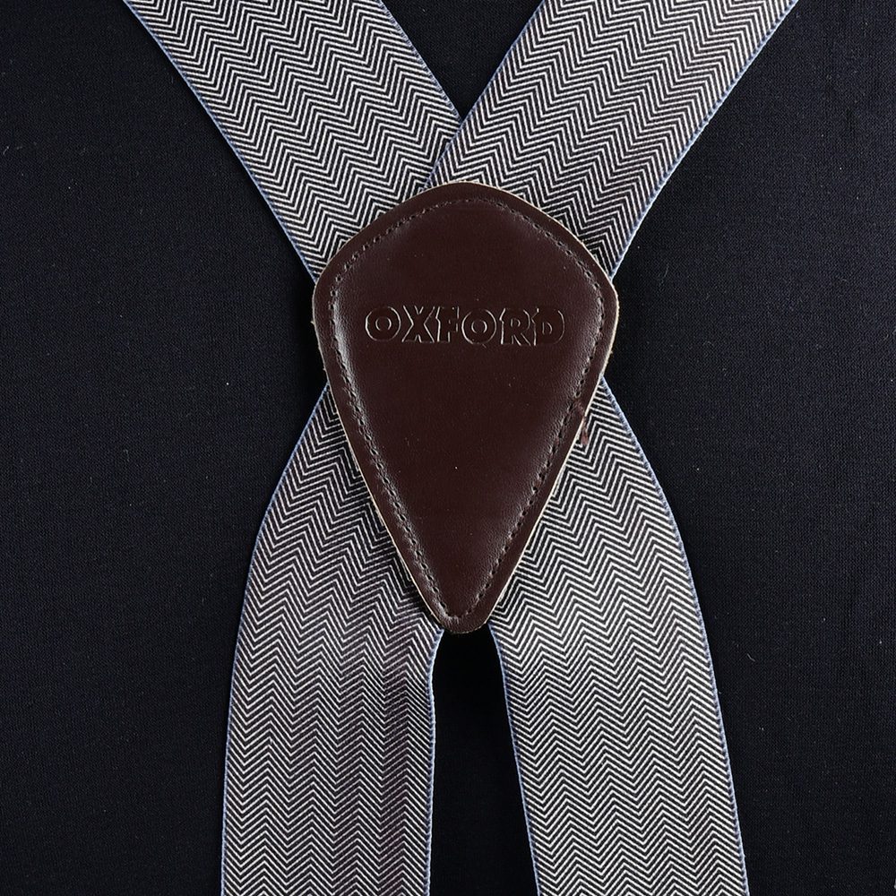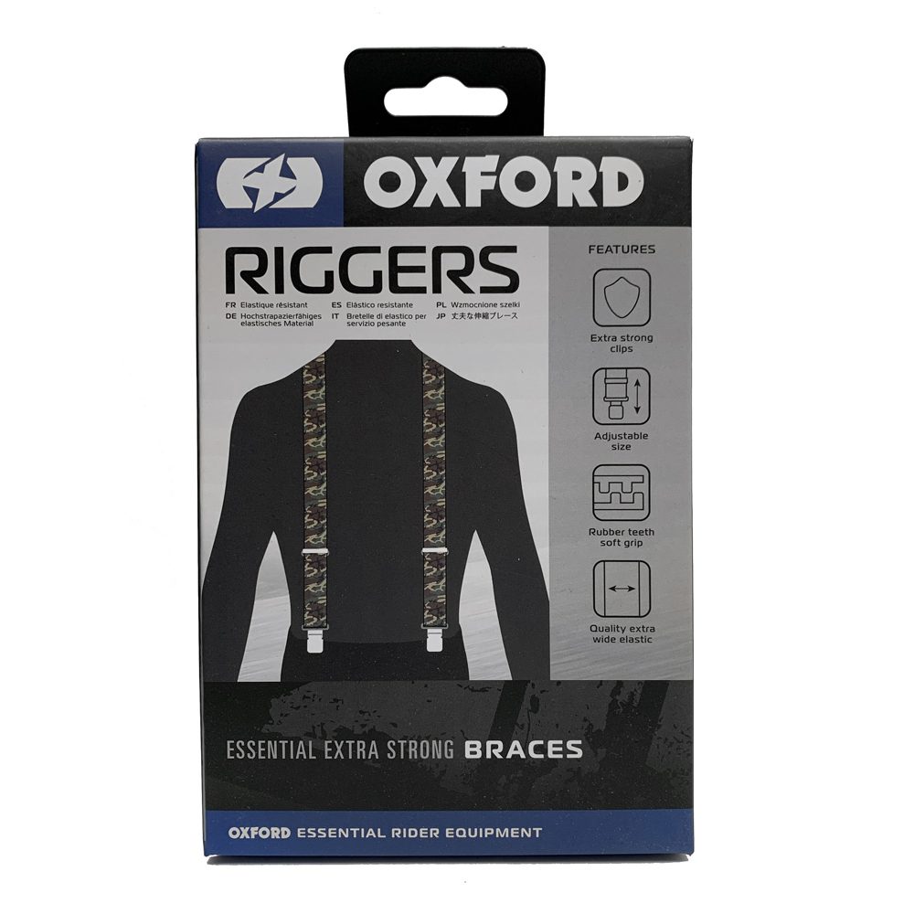 Fed up of your trousers falling down? Do belts aggravate you while riding? Then look no further than the Oxford Riggers motorcycle braces! A great help in keeping your trousers up while both on and off your bike. With a comfortable design, sturdy design and adjustable length, theyโre a perfect fit for anybody! Available in a range of colours and graphics to match any riders gear, bike and personal taste.
