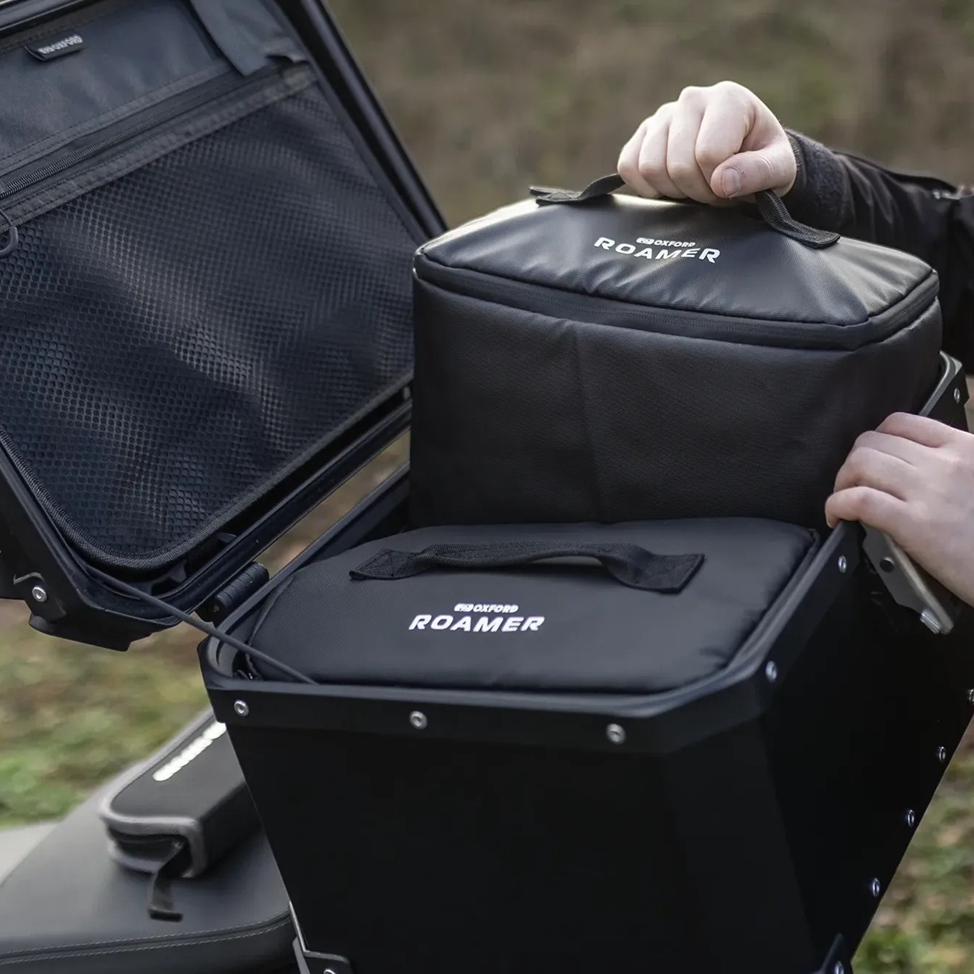 The Oxford Roamer grab bag offers a complete top box packing solution. The most comprehensive range of inner bag storage, Roamer Grab Bags are offered in multiple sizes to facilitate organising your kit, enabling you to select the perfect storage combination. Choose from 65l, 45l, 15l and 10l capacities – both larger bags are expandable in height to accommodate a motorcycle helmet.