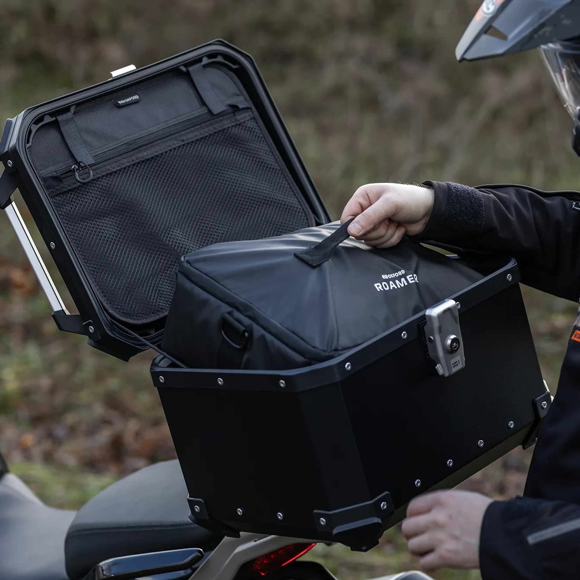 The Oxford Roamer Motorcycle grab bag offers a complete top box packing solution. The most comprehensive range of inner bag storage, Roamer Grab Bags are offered in multiple sizes to facilitate organising your kit, enabling you to select the perfect storage combination. Choose from 65l, 45l, 15l and 10l capacities – both larger bags are expandable in height to accommodate a motorcycle helmet.