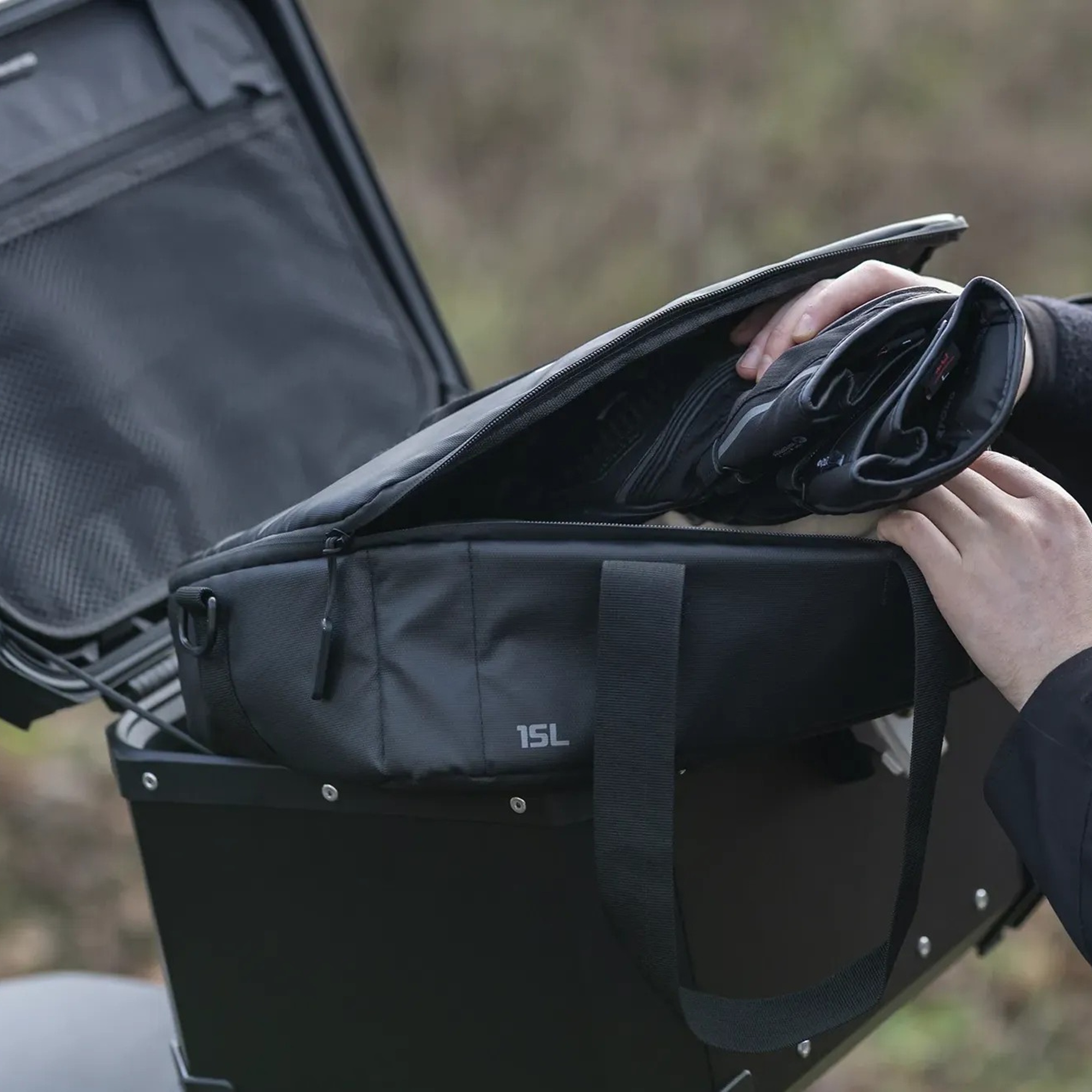The Roamer Motorcycle grab bag offers a complete top box packing solution. The most comprehensive range of inner bag storage, Roamer Grab Bags are offered in multiple sizes to facilitate organising your kit, enabling you to select the perfect storage combination. Choose from 65l, 45l, 15l and 10l capacities – both larger bags are expandable in height to accommodate a motorcycle helmet.