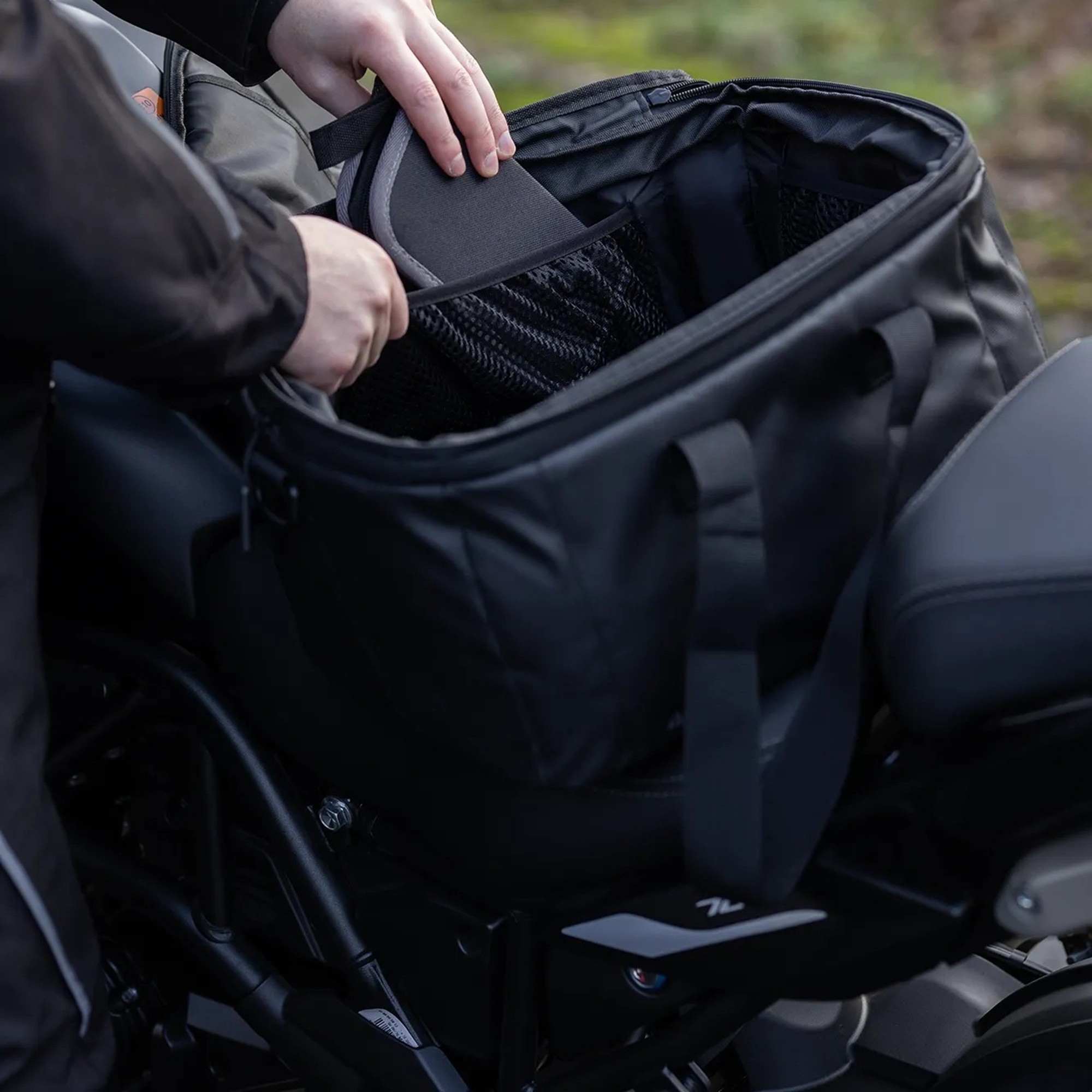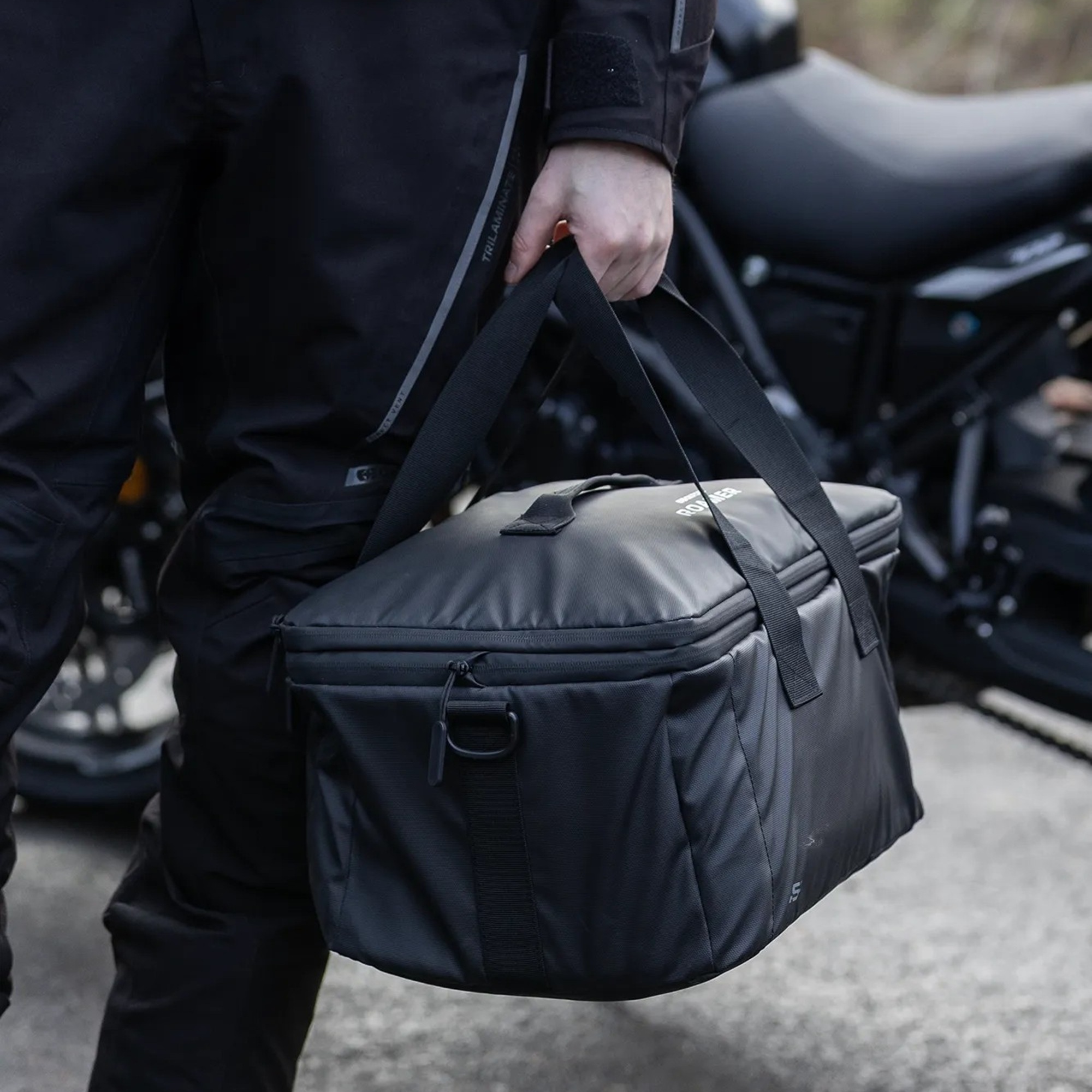 The Roamer Motorcycle grab bag offers a complete top box packing solution. The most comprehensive range of inner bag storage, Roamer Grab Bags are offered in multiple sizes to facilitate organising your kit, enabling you to select the perfect storage combination. Choose from 65l, 45l, 15l and 10l capacities – both larger bags are expandable in height to accommodate a motorcycle helmet.