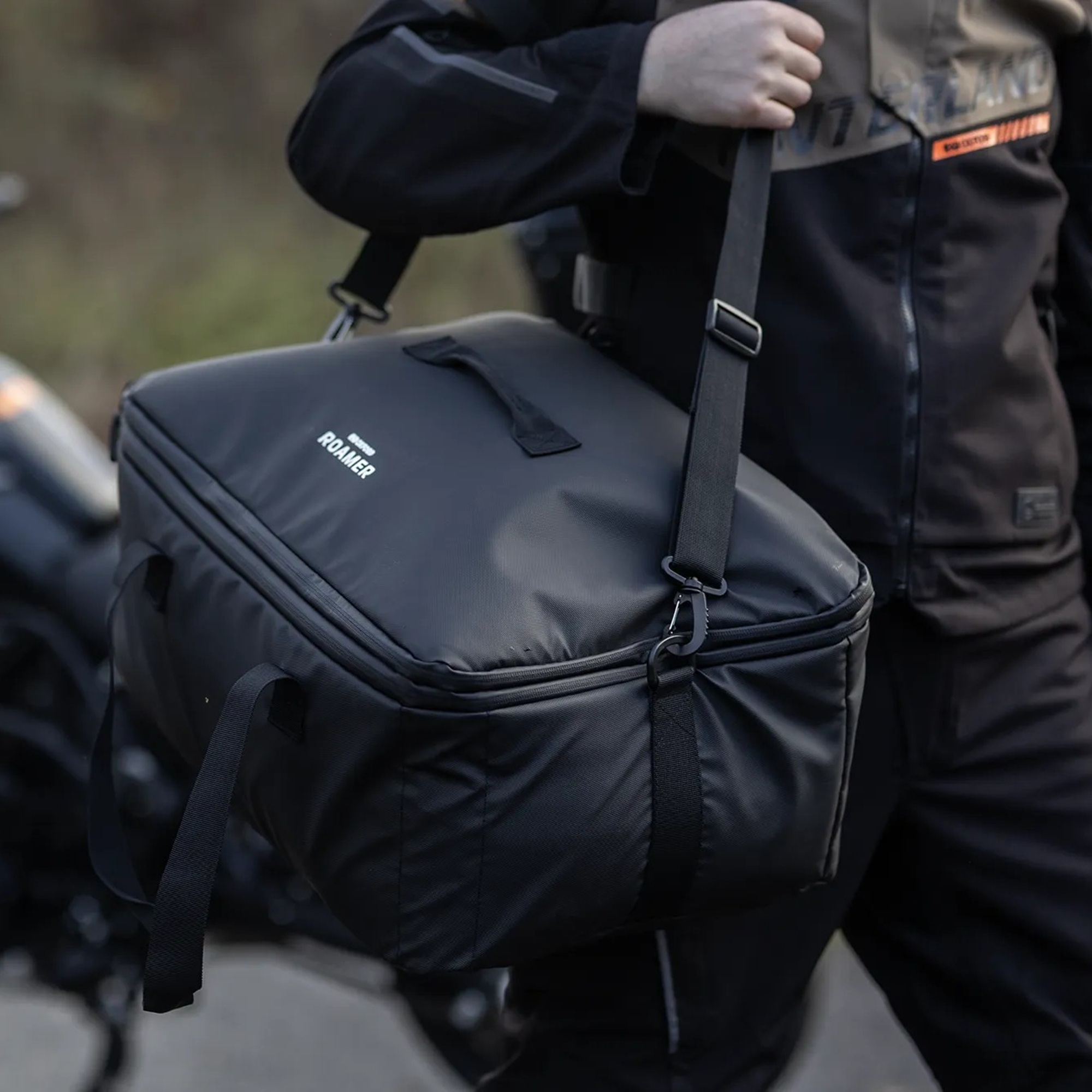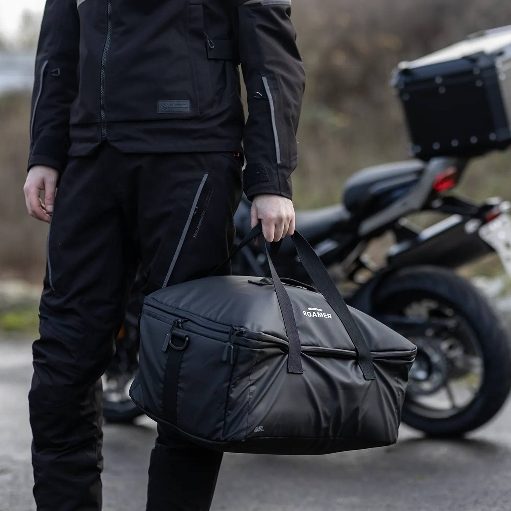 The Roamer Motorcycle grab bag offers a complete top box packing solution. The most comprehensive range of inner bag storage, Roamer Grab Bags are offered in multiple sizes to facilitate organising your kit, enabling you to select the perfect storage combination. Choose from 65l, 45l, 15l and 10l capacities – both larger bags are expandable in height to accommodate a motorcycle helmet.
