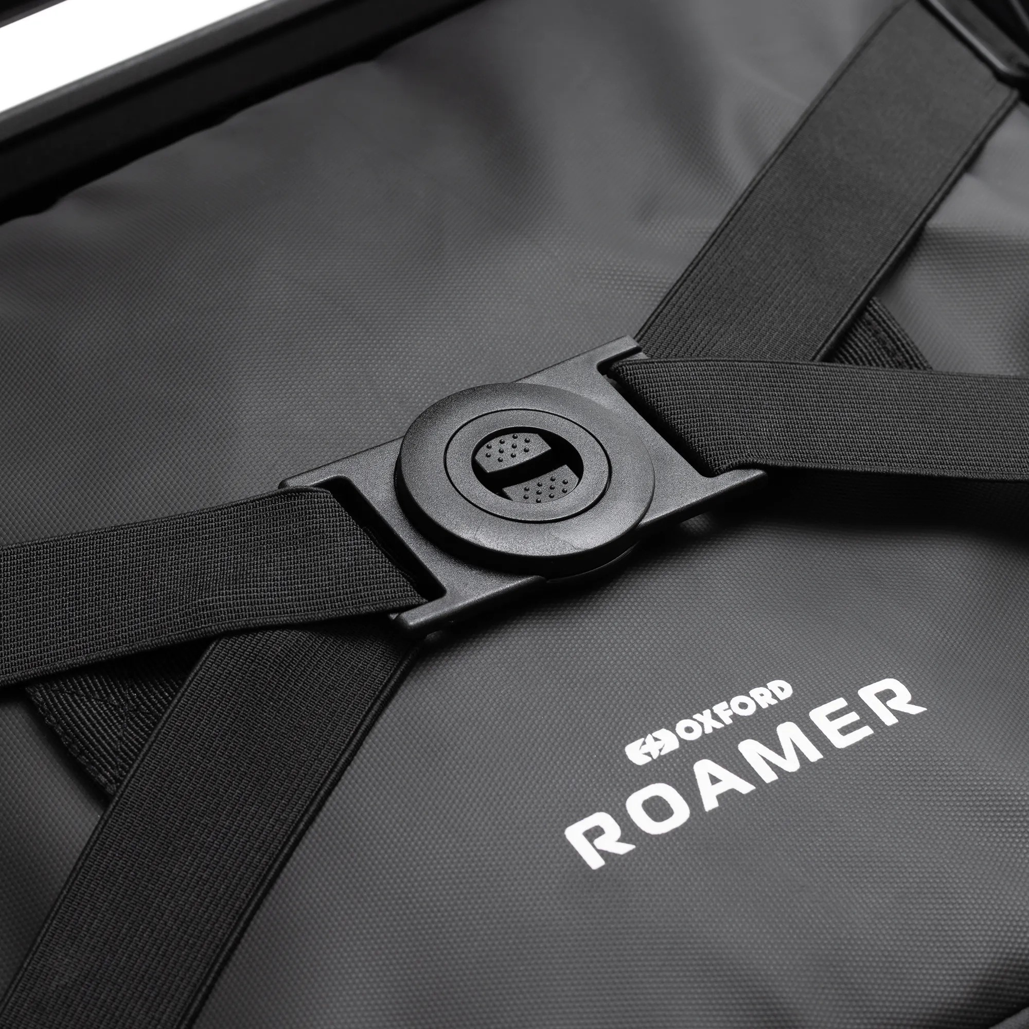 Capable of holding one (45l) or two helmets (65l) within its lined interior, the Roamer benefits from a large, removable zipped mesh pocket within the lid to stow smaller items. Stretchy padded retention straps hold contents securely in place and an extensive range of Roamer Grab Bags and Roll Bags give plenty of additional storage options. Oxford’s B-Clip 0.8m Atlas Straps are the perfect length to secure the Roamer Roll Bag to the Top Box and are available in high-vis yellow and black.