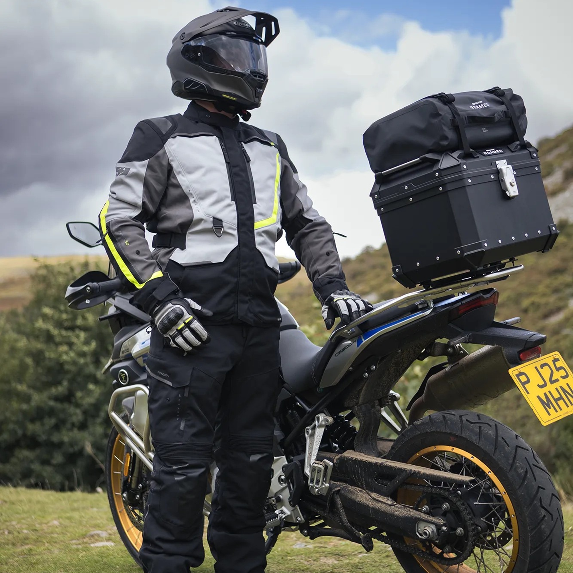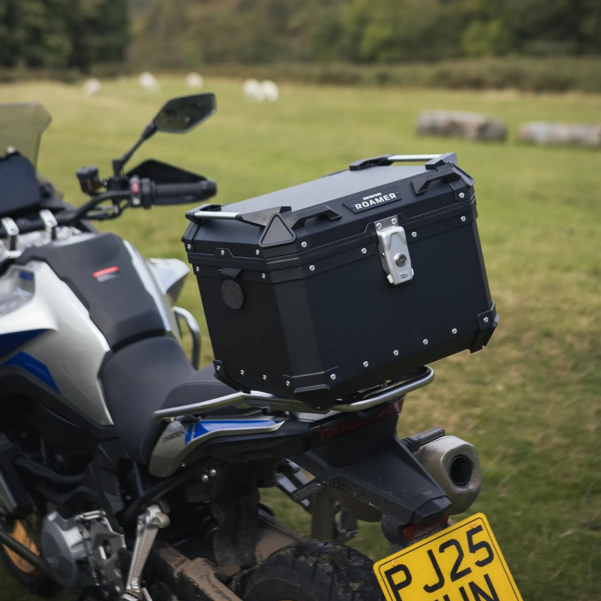The classically styled, high-grade aluminium Oxford Roamer Motorcycle Top Box is available in 45l and 65l storage capacities. With sturdy grab rails and armoured corners this luggage is built for life on the road, a quick-release locking mechanism secures the lid and a spare set of keys are included. Keeping kit dry is essential; an internal silicone seal and removable, neoprene cushioned liners ensure the Roamer Top Box remains 100% waterproof.