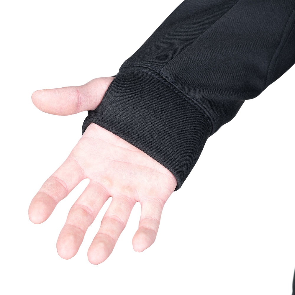 Thumb loops to secure hoodie whilst riding and prevent windchill up the arm.
