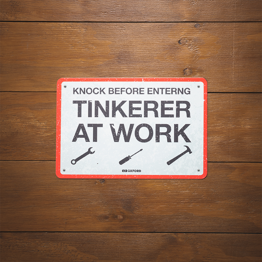 The Oxford Tinkerer motorcycle garage sign is perfect for riders looking to finish of their workspace, sheds and garages. Celebrate being a part of the greatest community on earth by displaying a metal motorcycle sign on your wall. Whether you commute to work, cross continents or tear up the race track there’s a sign that suits your riding style. With pre-drilled holes perfect for mounting, the metal motorbike sign is a superb gift for the biker who has it all.