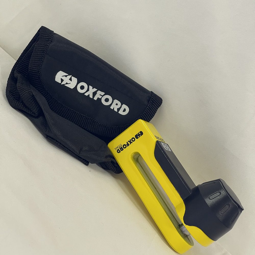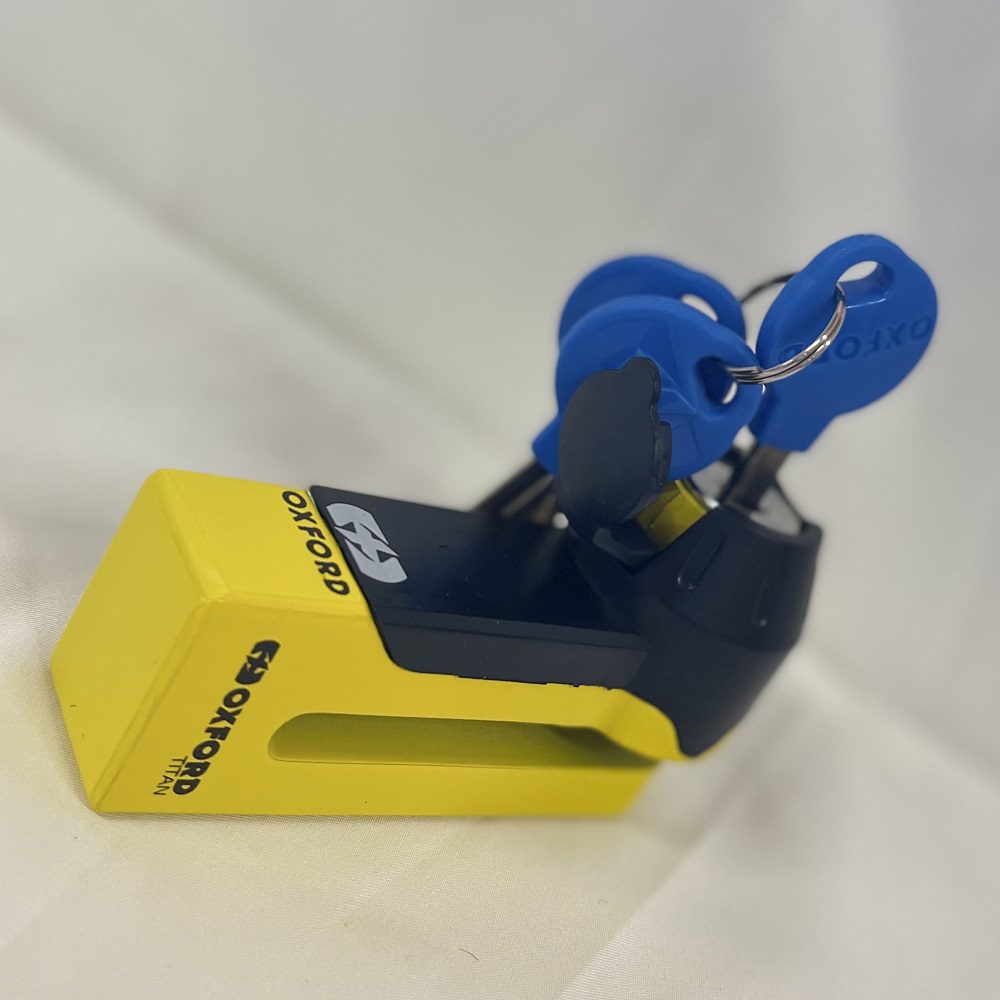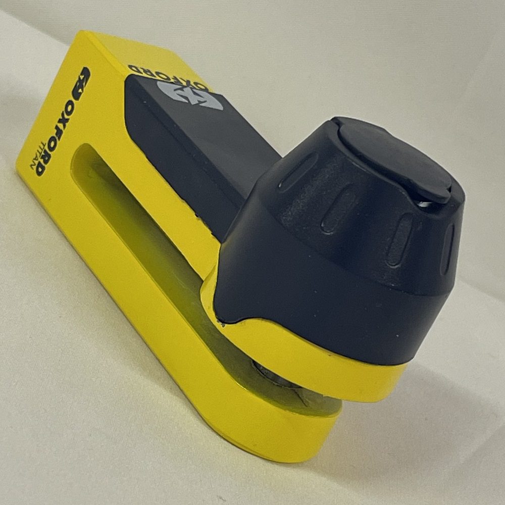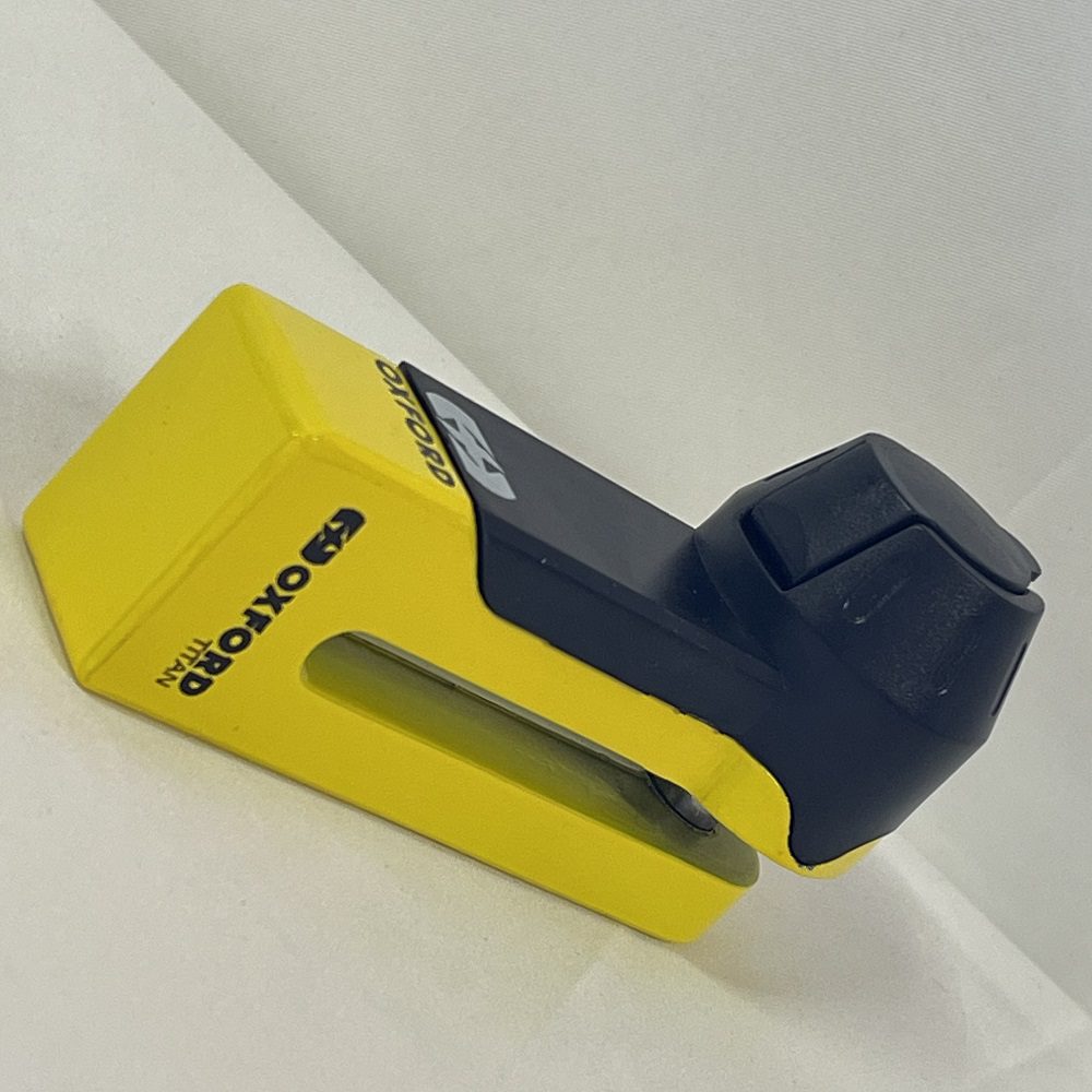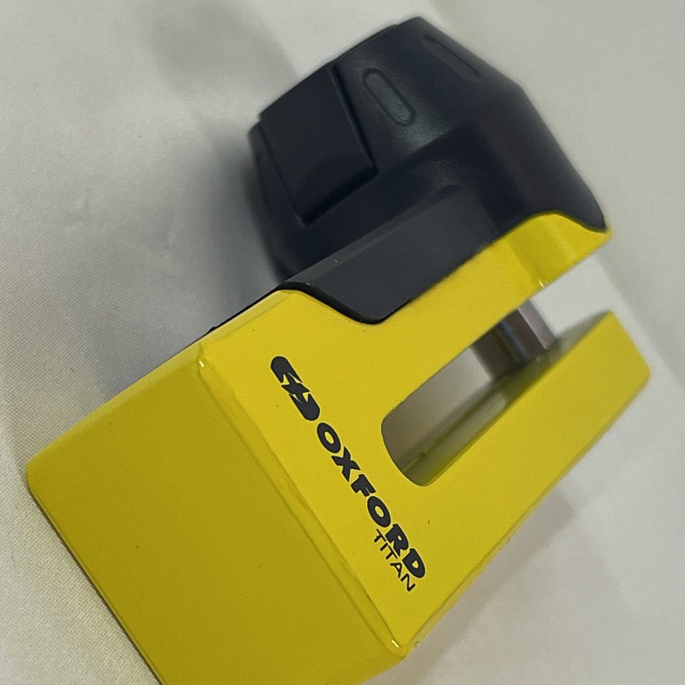 The Oxford Titan motorcycle disc lock is a great solution for riders who don’t want to substitute strength for size. Offers the option for riders to safely secure their ride without having the haul around heavy security gear on every journey. Available in either chrome or yellow.