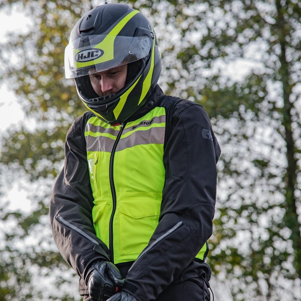 The Oxford Utility bright motorcycle top vest is a high visibility vest designed to keep you seen even in poor visibility. The hi-vis riding vest comes with stretch panels to deliver an excellent fit, and also has two front pockets and an ID pocket for ease of use. Certified to EN1150 high visibility standard, you can rest easy knowing you’ll be seen at all times. It is intelligently sized to fit over your jacket (for example if you’re a large jacket size then choose large vest).