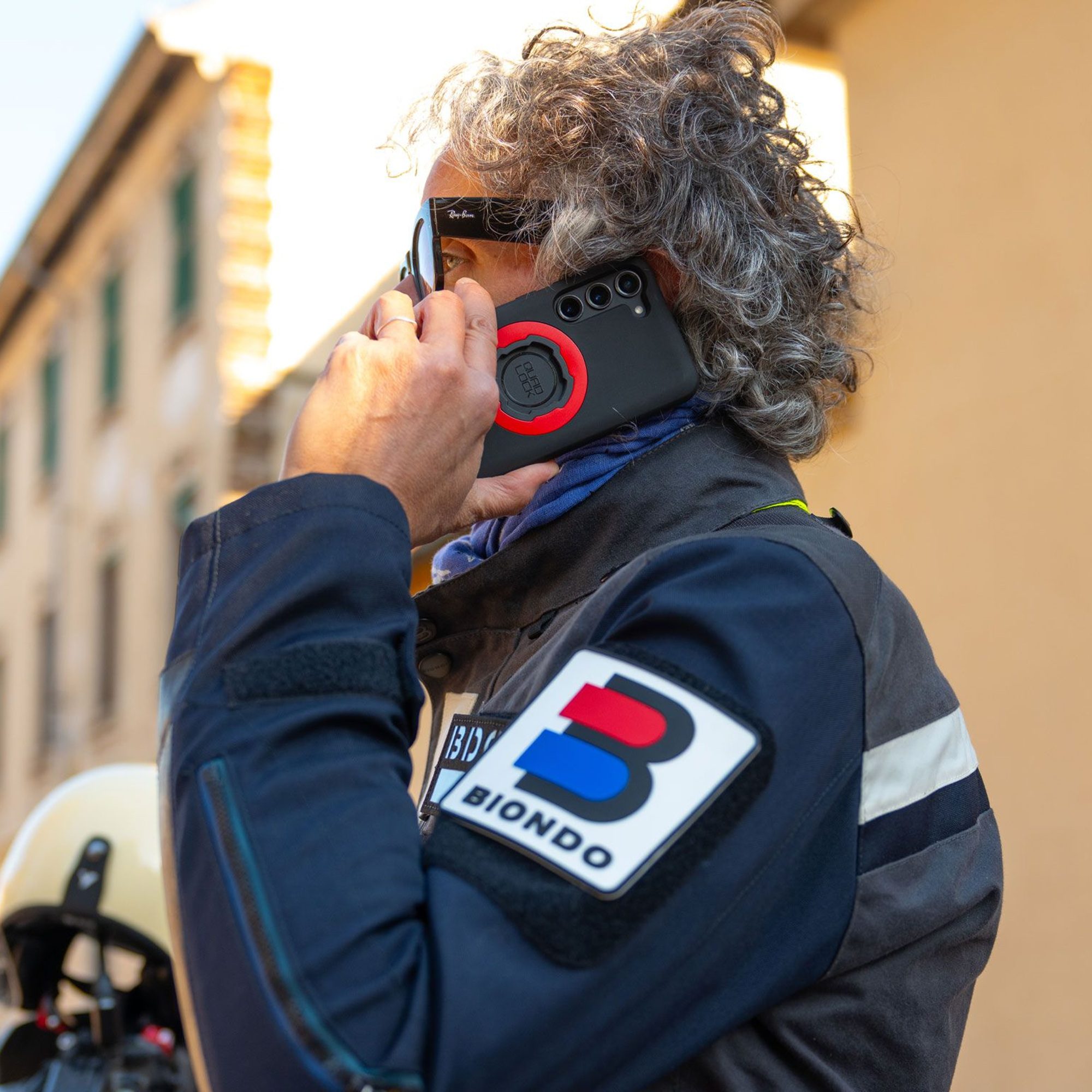The Quad Lock MAG Samsung Galaxy motorcycle phone case feature Quad Lock’s secure locking mechanism compatible with all twist & lock mounts. The Galaxy cases are constructed with an impact resistant polycarbonate core edge to edge impact absorbing TPU cover, and protective lining.