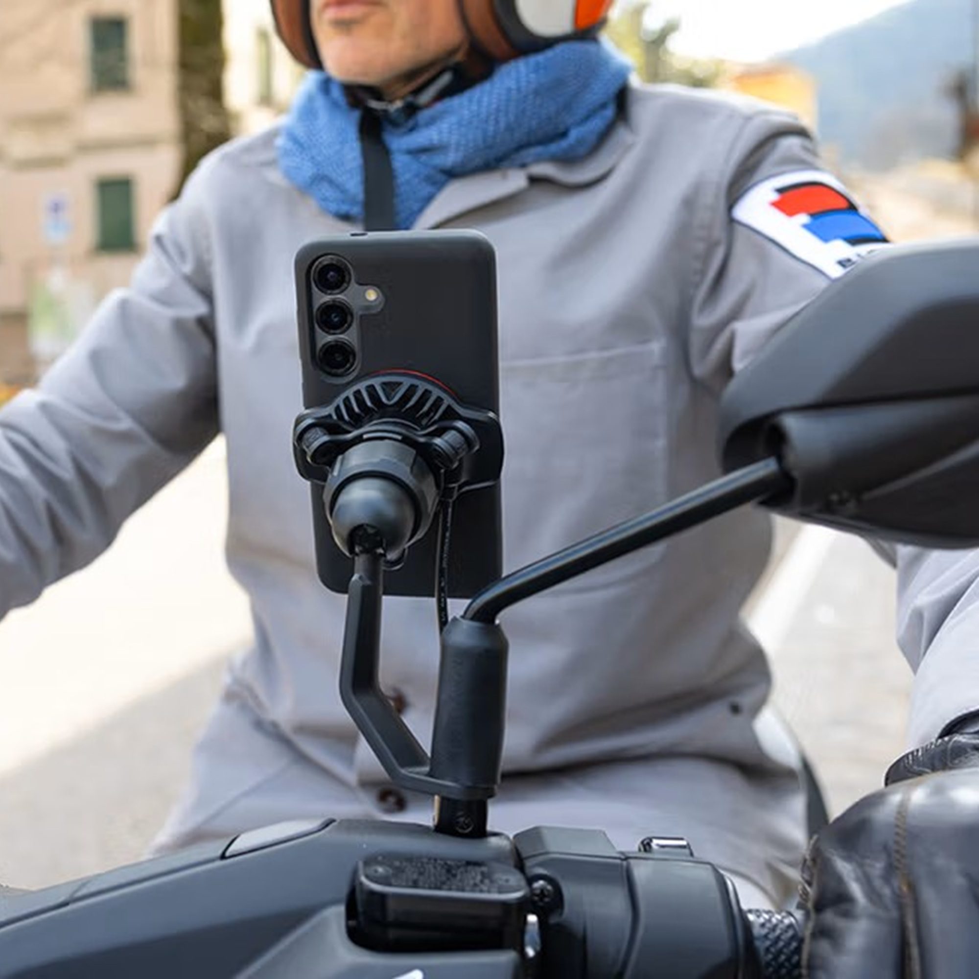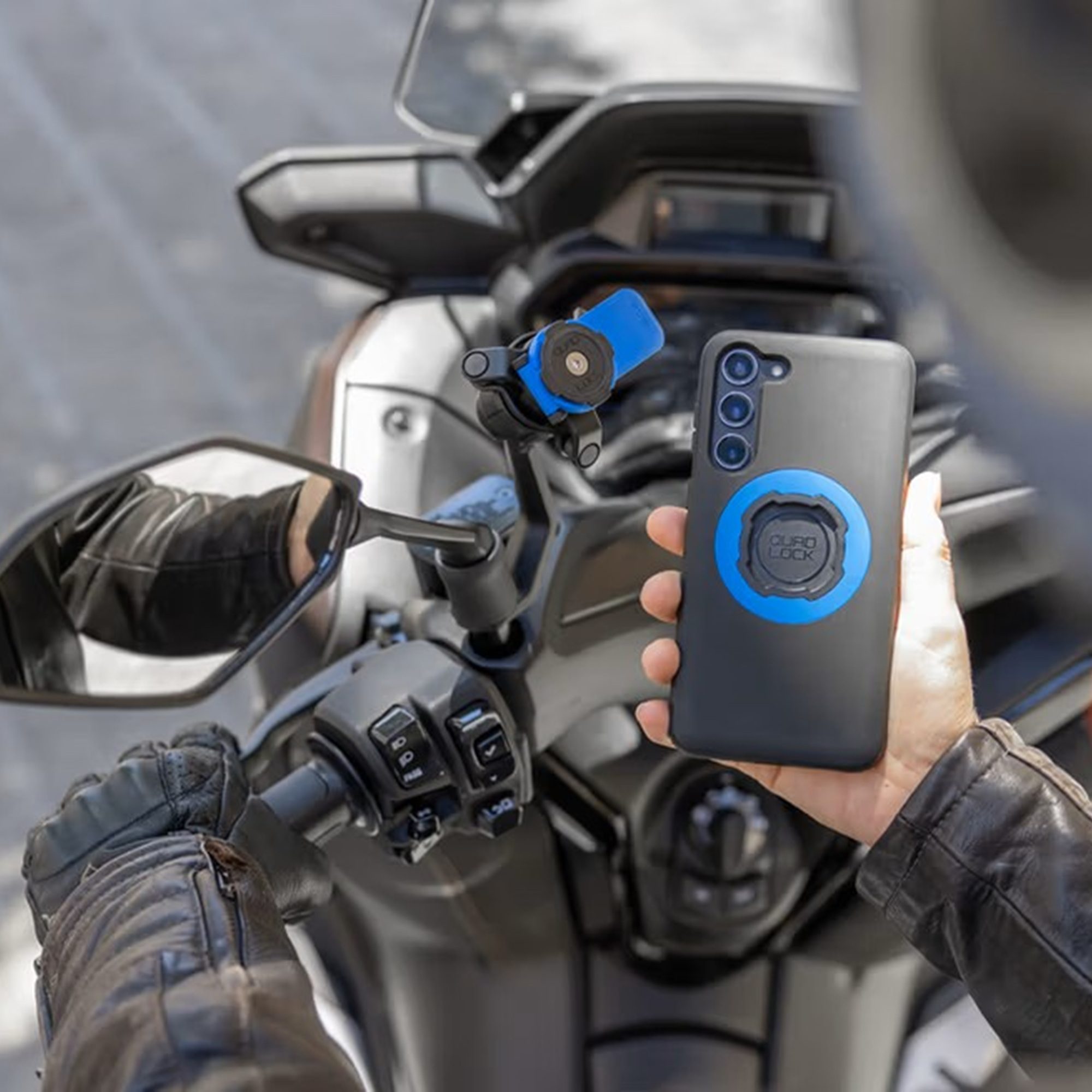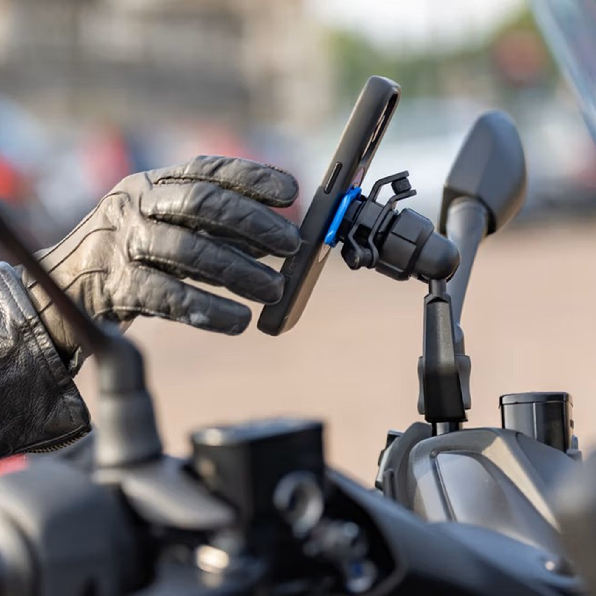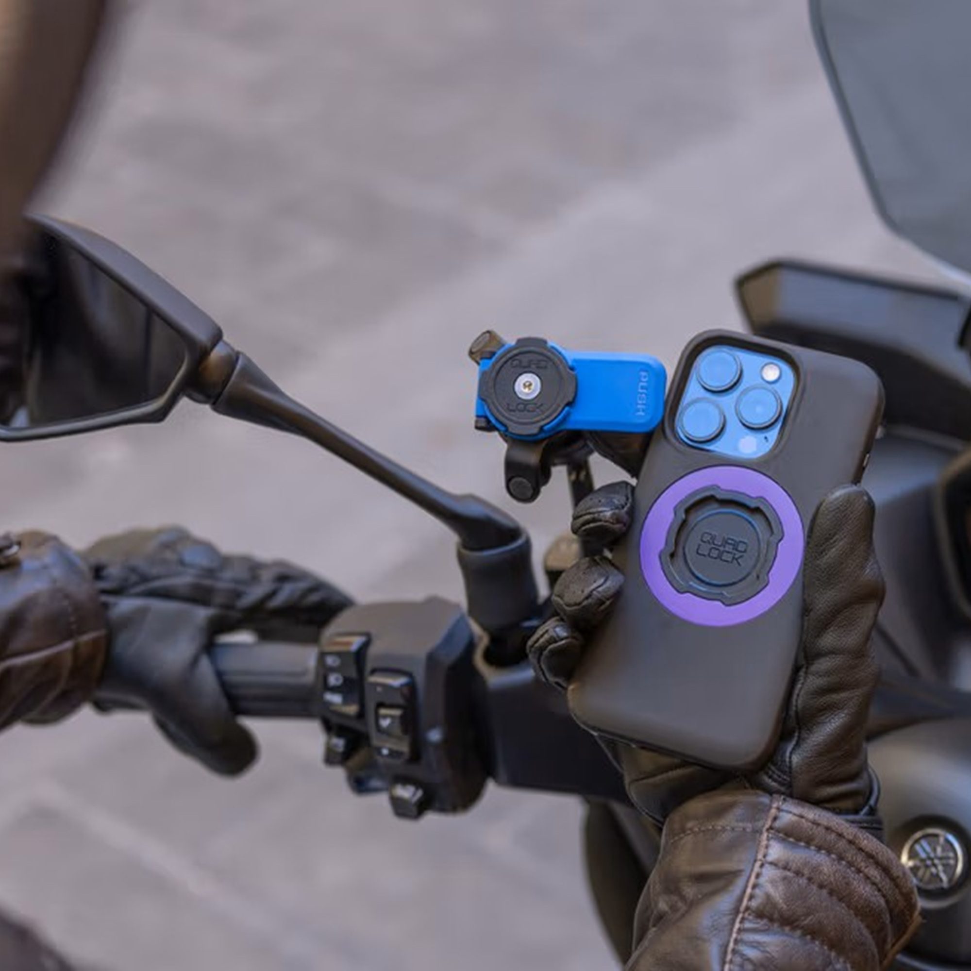 Designed to complement your bike’s aesthetics, the Quad Lock® Mirror Stem Mount features a minimalistic and robust design that integrates seamlessly with your scooter or motorcycle.