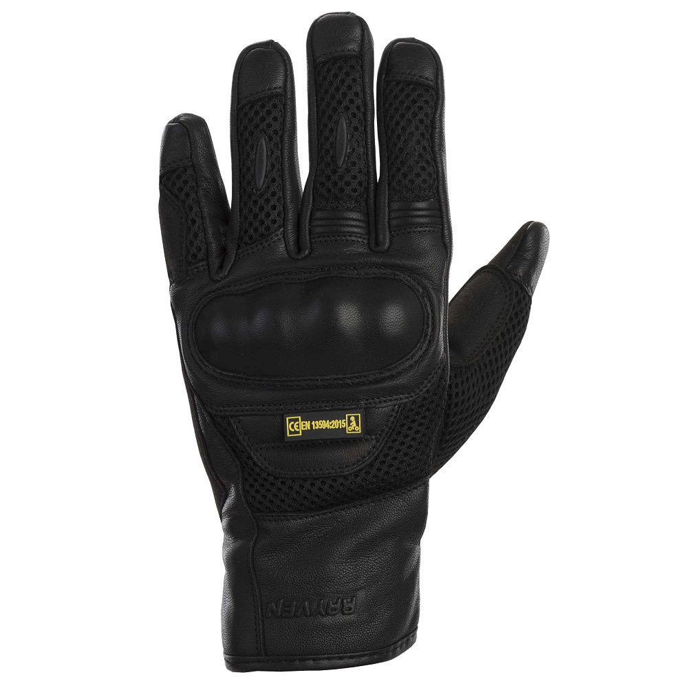 The Rayven Block Island motorcycle gloves are a great solution for riders looking to stay cool and comfortable on the road. Constructed from a quality goatskin leather, the gloves continue to give and give long after their first journey. A hard knuckle protector in conjunction with reinforcements and dual density padding delivers ample protection and safety. A nylon mesh allows airflow and is a genuine delight on a summers day.