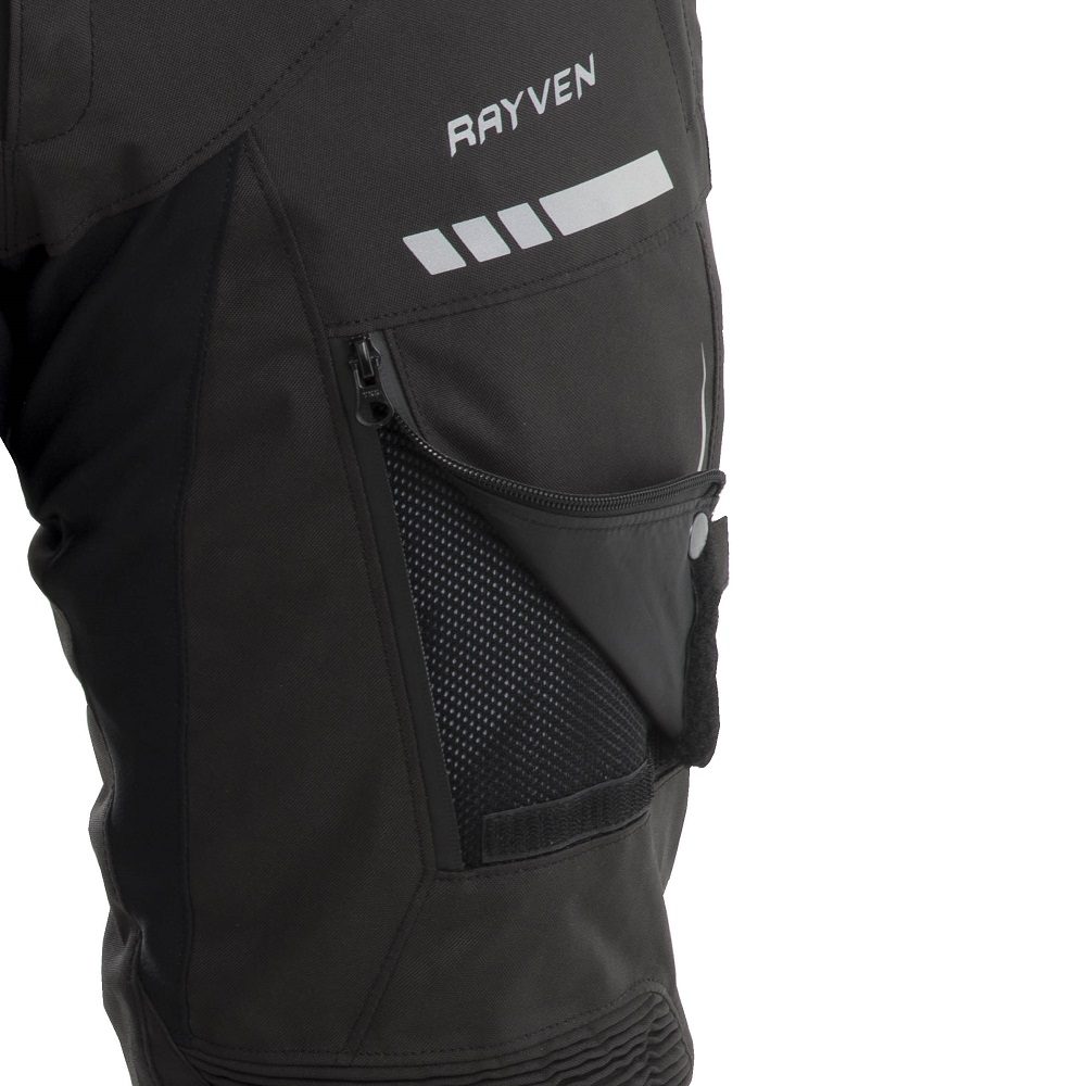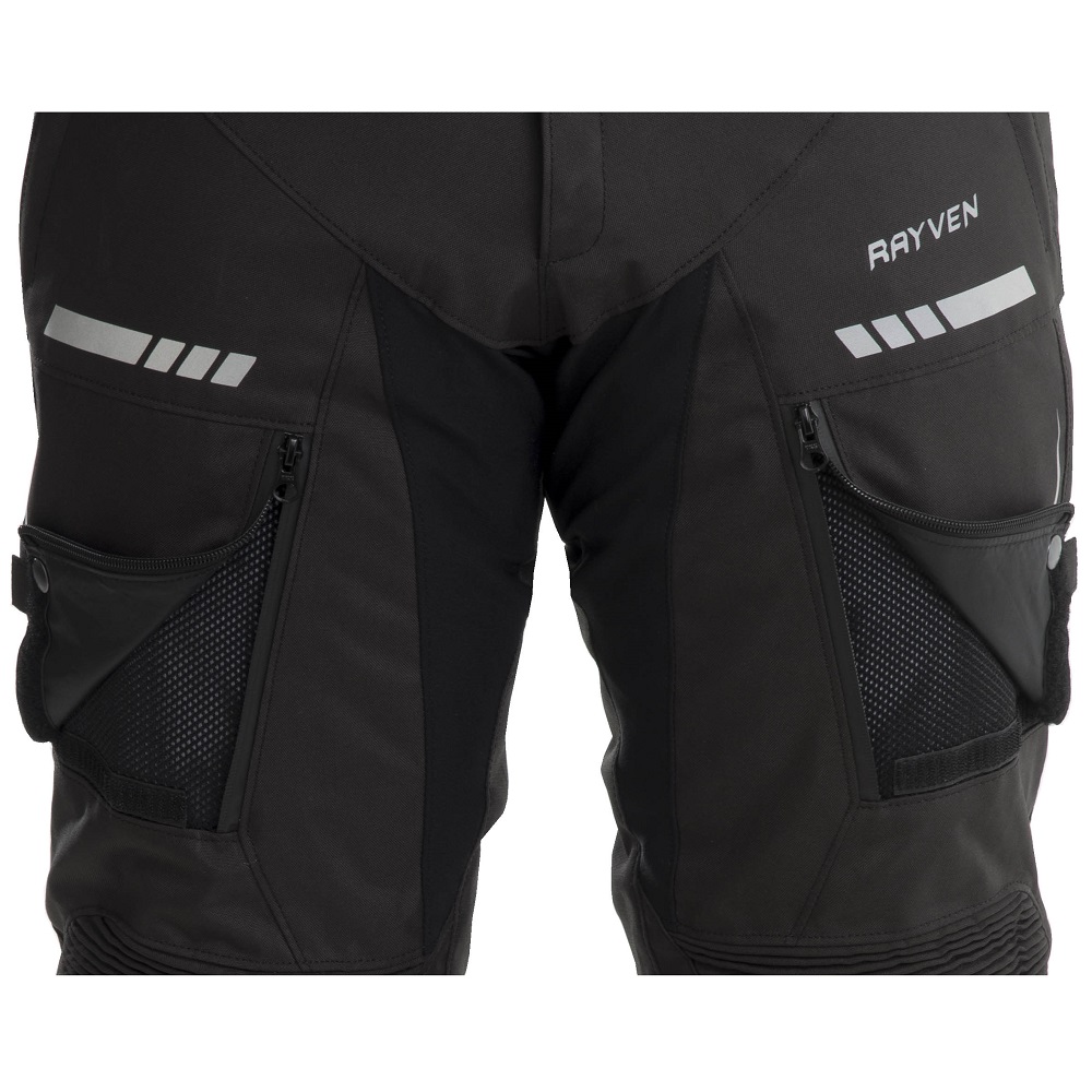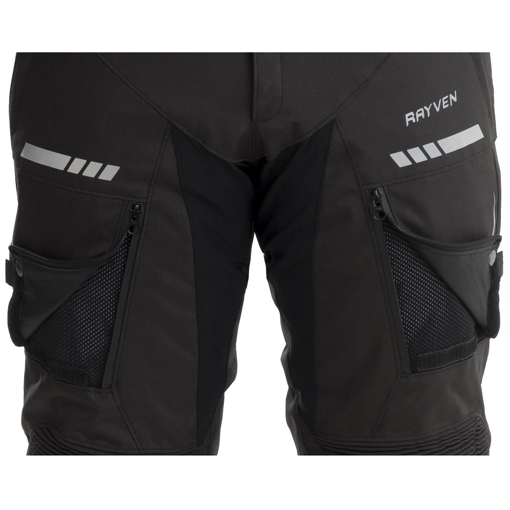 If you want to ride in comfort and safety, look no further than the Rayven Road motorcycle trousers! The motorbike trousers come with a 100% waterproof and breathable membrane as well as a removable thermal liner allowing you to ride all year round. The pants are equipped to handle the many tests the road will throw at you, with features including stretch panels, reflective printing and an anti-slip seat panel. CE approved Armour in the knees and high density foam inserts can be found in the hip areas, delivering safety on your journeys.