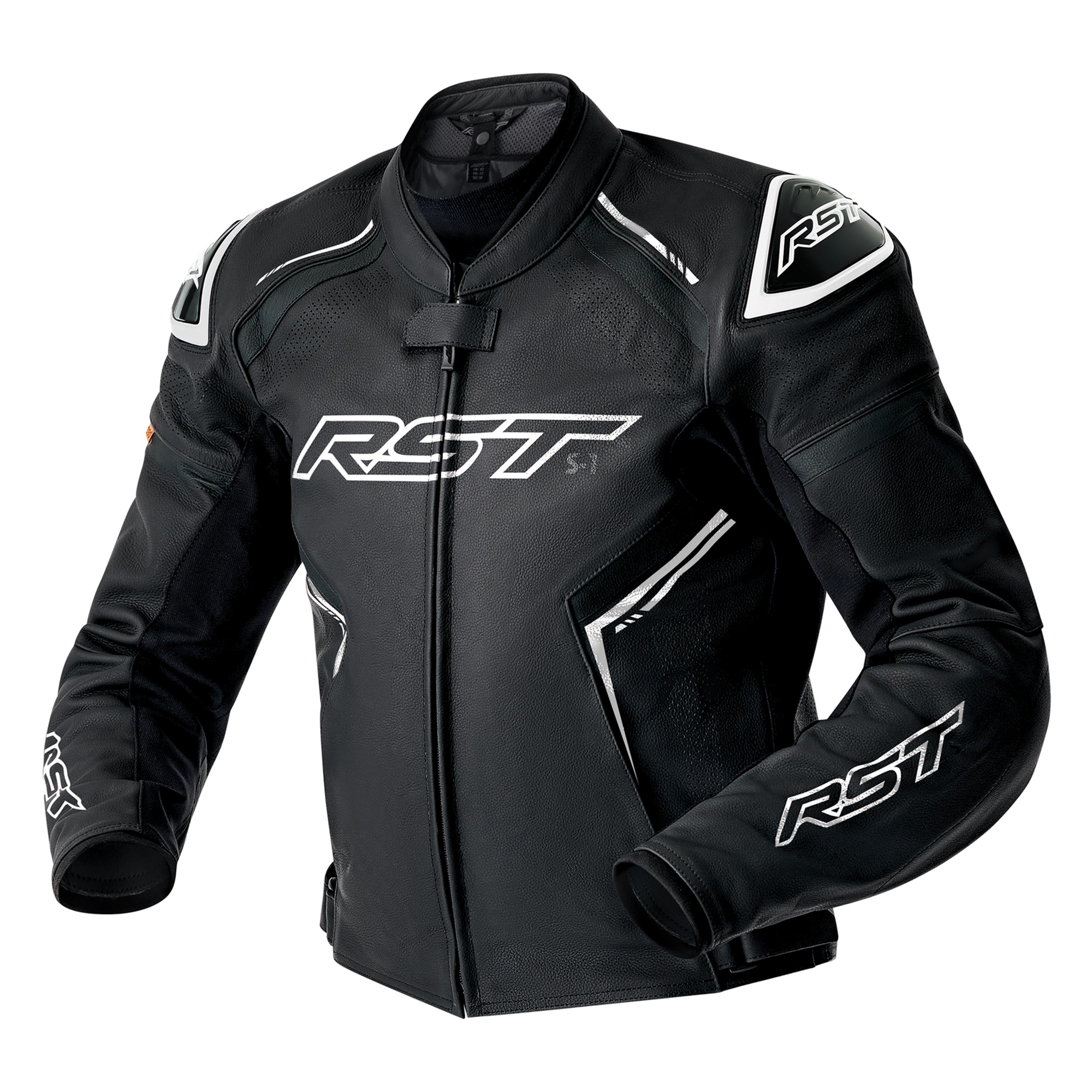 RST S1 D3O Leather Motorcycle Jacket – Black/Black/White