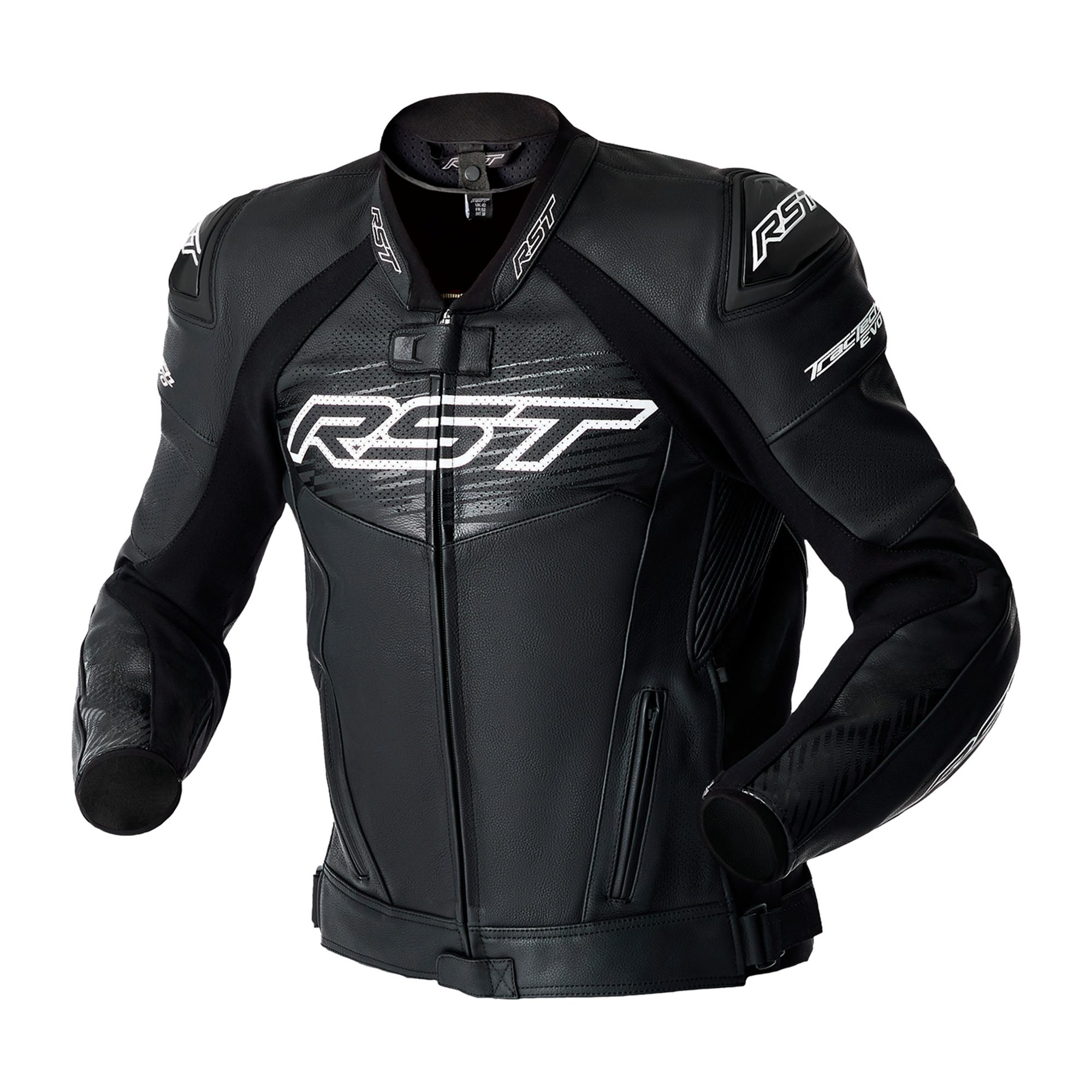 RST Tractech Evo D3O Leather Motorcycle Jacket – Black/White