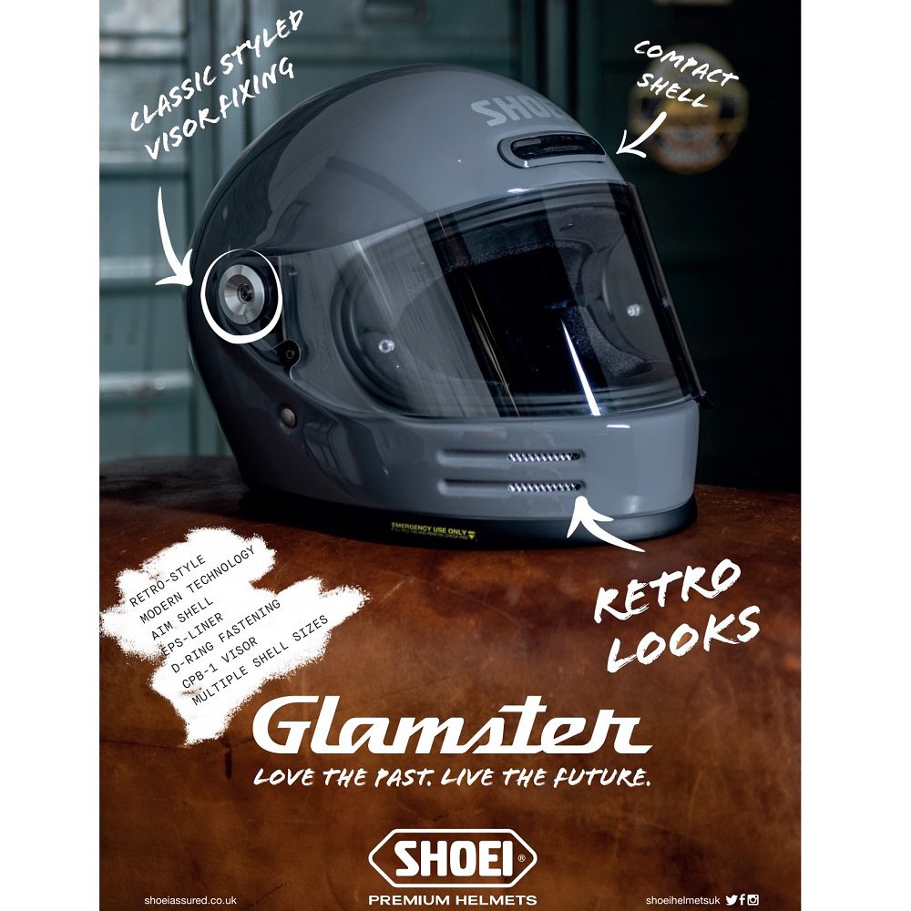 The Shoei Glamster 06 Plain vintage motorcycle helmet is the newest addition to the Neo-Classic series. The Glamster is a true retro helmet and an honest throwback to simpler times, which has the benefit of not needing to sacrifice on the comfort or safety of a modern motorbike helmet.