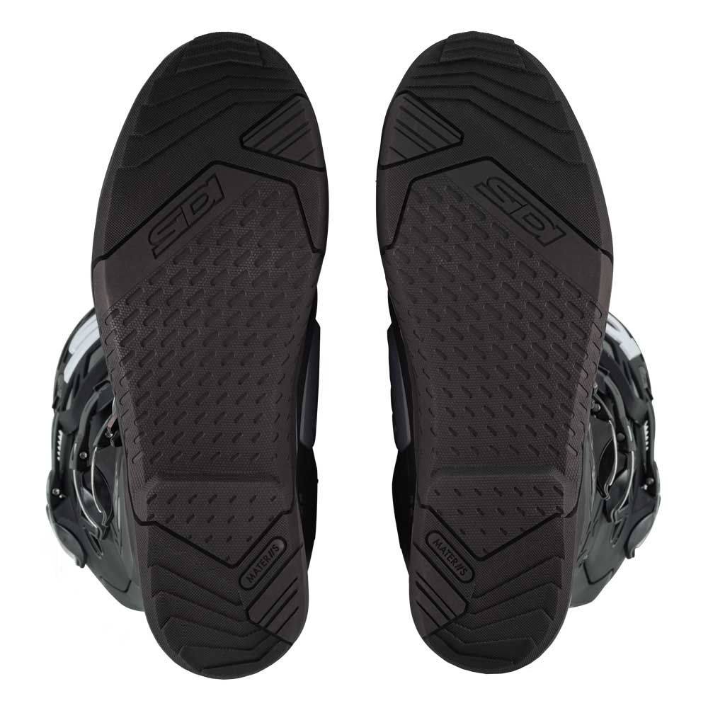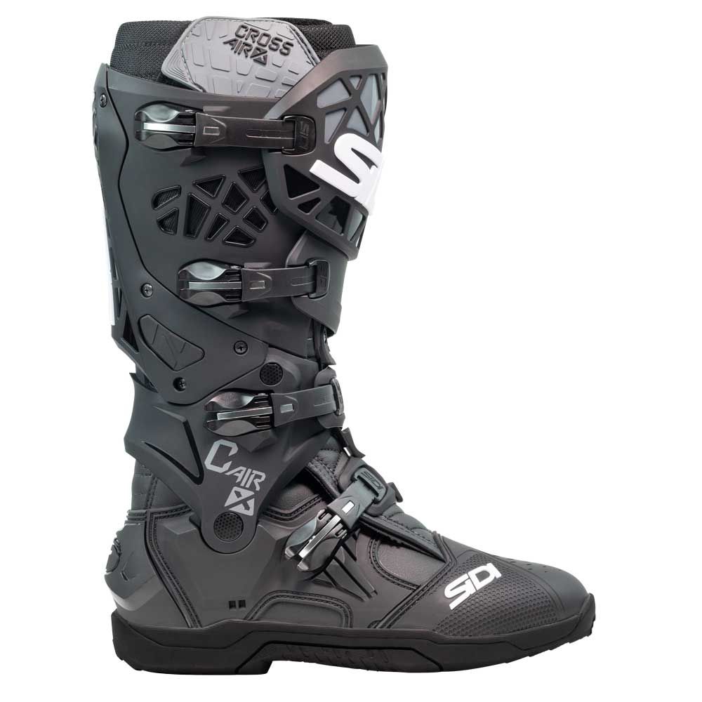 All the support, control and protection without the extra burden. Sidi Crossair X motorcycle boots deliver an outstanding level of safety, with high-density impact protectors covering the entire boot in a light and flexible structure engineered to perform. The sole, powered by Materiis compound, has been developed for the control and durability needed in a Supercross championship: the result is an endless level of total grip to tackle every circuit. Internally, a fiberglass exoskeleton provides support during jump landing, and a 3-point anti-hyper-flexion system protects from dangerous movements.