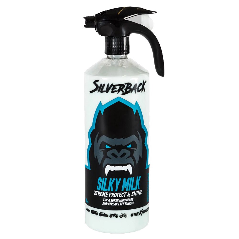 The Silverback Xtreme Silky Milk motorcycle polish is an easy to use biodegradable polish which provides a natural streak free shine. Effortlessly restore tired looking plastics and vinyl to it’s original high gloss, which leaves behind a protective micro layer with no sticky residue. Developed for use on most hard surfaces, as well as sensitive paintwork, plastics and decals on all types of vehicles. The Silverback motorbike polish is a non-petroleum solvent formulation which contains inert and biodegradable materials. Developed and manufactured in the UK.