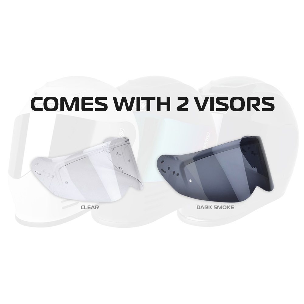 • Free dark smoke visor included in every box.