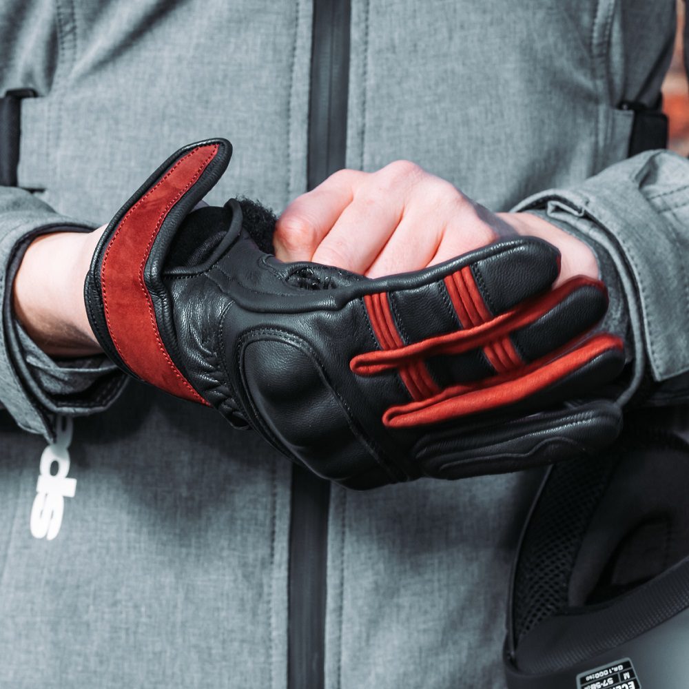 These black leather motorcycle gloves with elegant burgundy accents offer both style and protection. With CE certified Level 1 safety and reinforced knuckle guards, they provide reliable impact resistance while maintaining comfort and flexibility. Ideal for riders seeking a blend of classic design and dependable protection on every ride.
