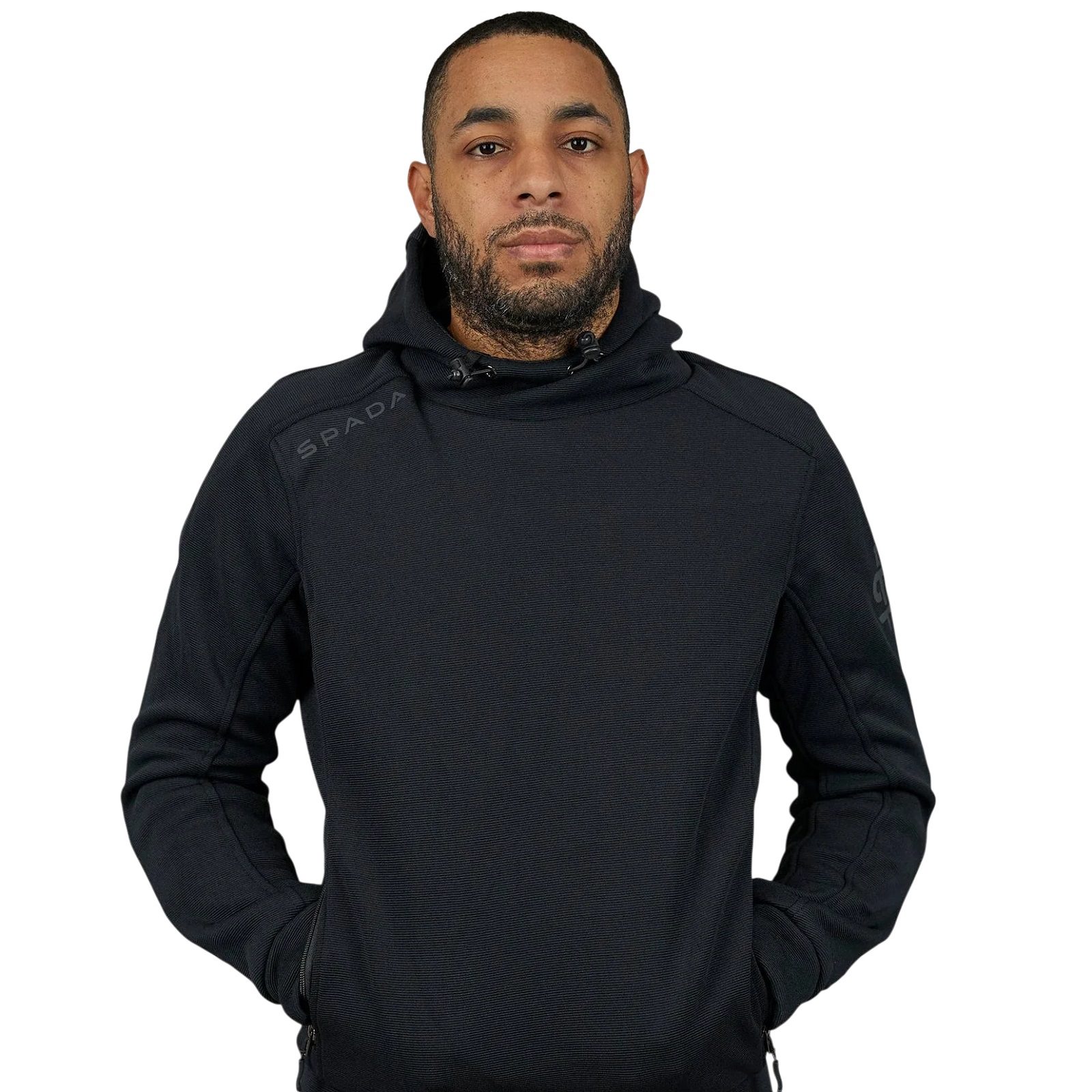 The Spada Blade motorcycle hoodie is no ordinary riding hoodie. Engineered from a unique high-performance 4-way stretch bonded polyester repurposed from the ergonomic panels of racing leathers.