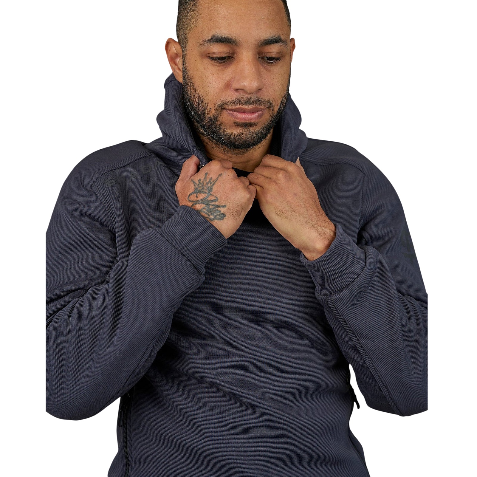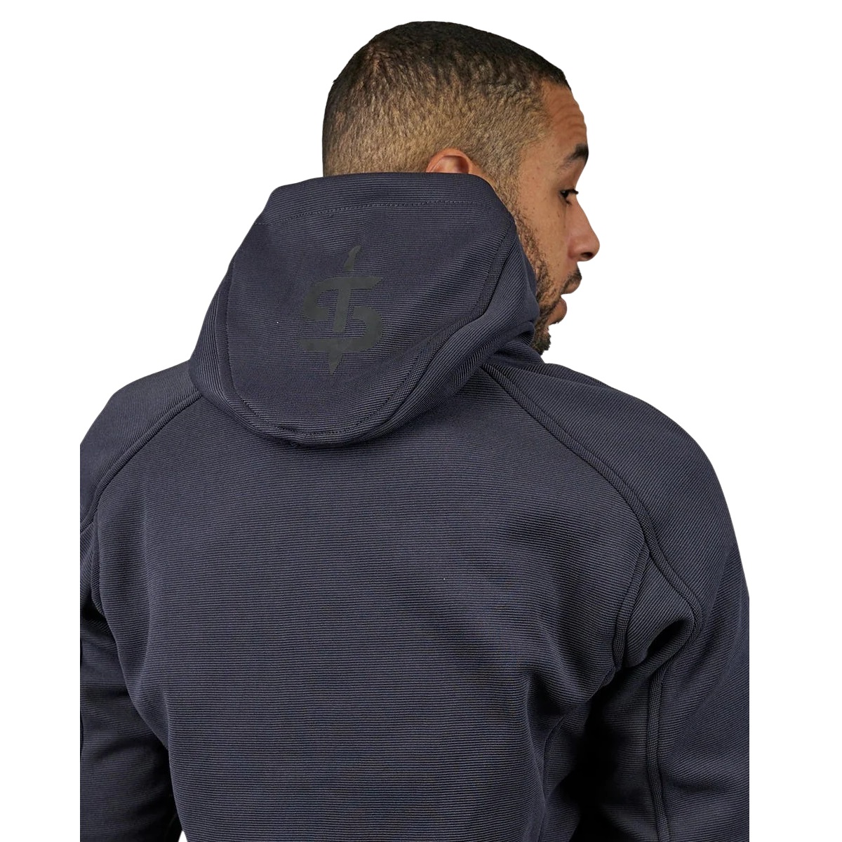 The Spada Blade motorcycle hoodie is no ordinary riding hoodie. Engineered from a unique high-performance 4-way stretch bonded polyester repurposed from the ergonomic panels of racing leathers.