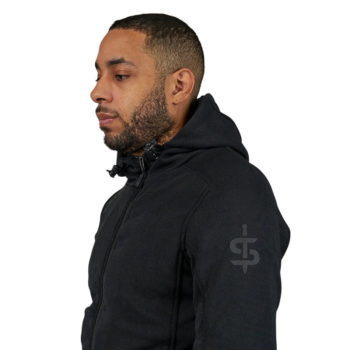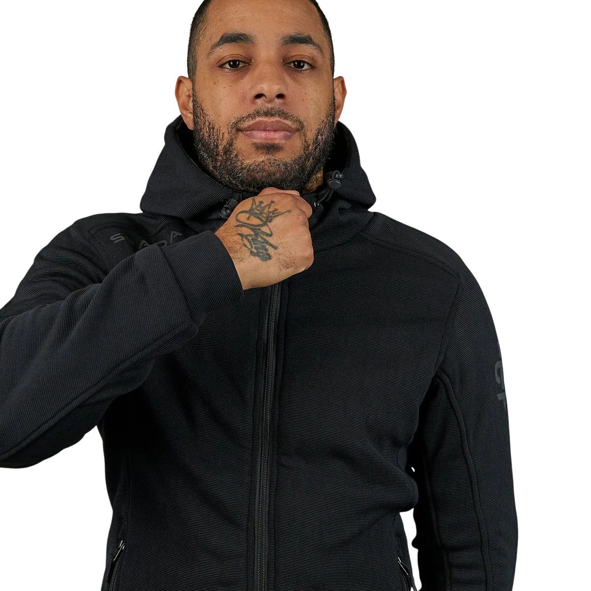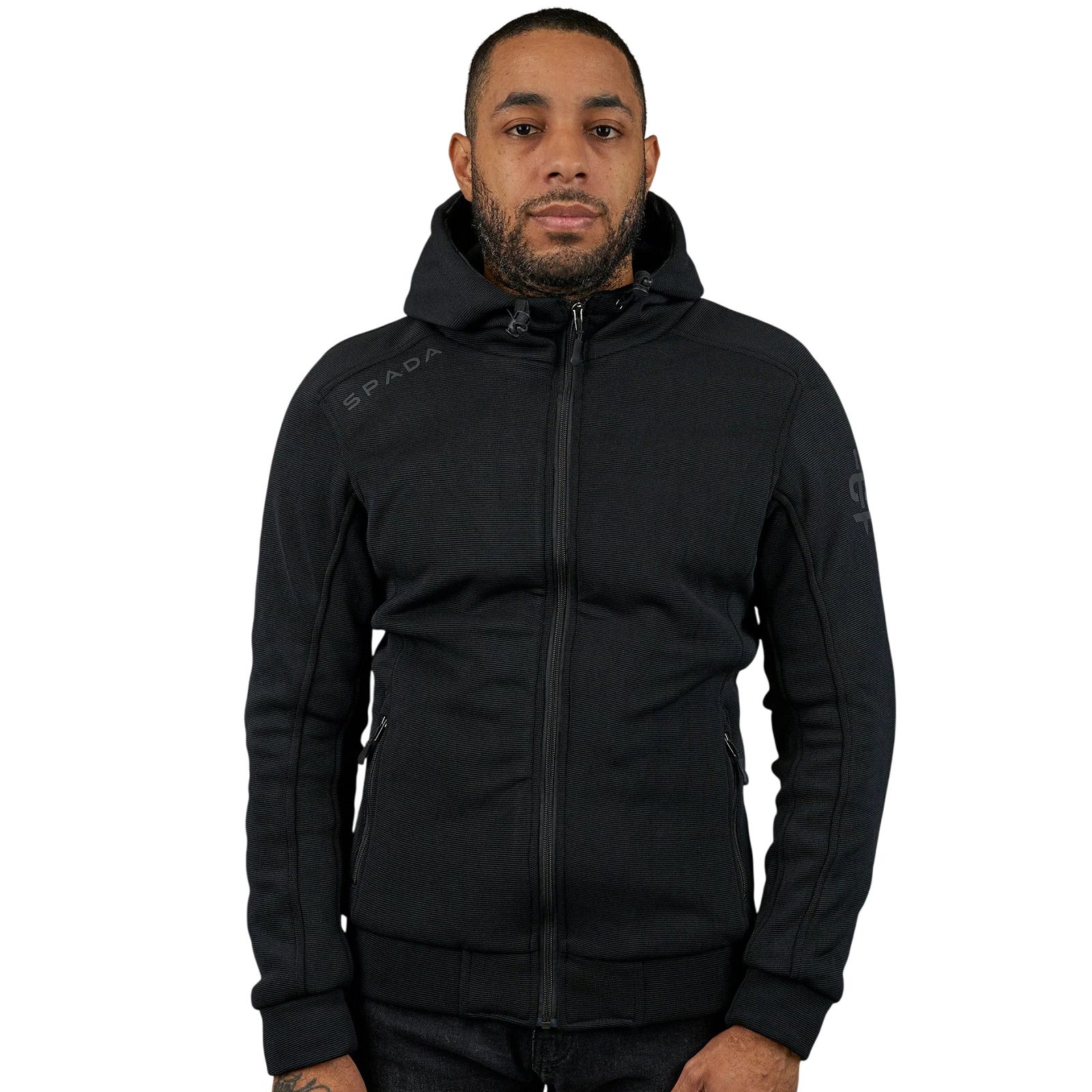 The Spada Blade Zip motorcycle hoodie is no ordinary riding hoodie. Engineered from a unique high-performance 4-way stretch bonded polyester repurposed from the ergonomic panels of racing leathers.
