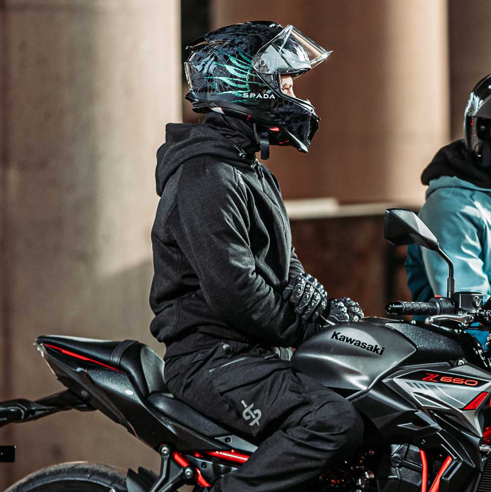 The Spada motorbike hoodie delivers street style & athletic comfort, as well as tough motorbike protection. Available in a range of colours to match any riders gear, bike and personal taste.